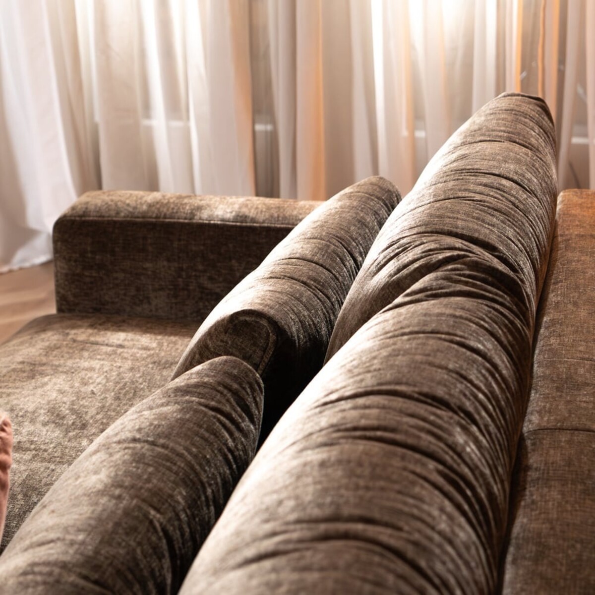 Die Sitzfläche besteht aus HR3030 Kaltschaum. Kaltschaum ist für seine Elastizität und Langlebigkeit bekannt und sorgt für jahrelangen Sitzkomfort, ohne dass das Sofa schnell durchsitzt. Nosagfedern im Gestell bieten zusätzliche Unterstützung und Komfort, sodass du sowohl aufrecht sitzen als auch entspannt loungen kannst. Das Sitzkissen ist durchdacht befestigt. Hinten fest verankert und vorne mit Klettband fixiert. So lässt sich der Bereich unter den Kissen einfach reinigen. Damit ist die Konstruktion dieses Sofas nicht nur komfortabel, sondern auch besonders pflegeleicht.