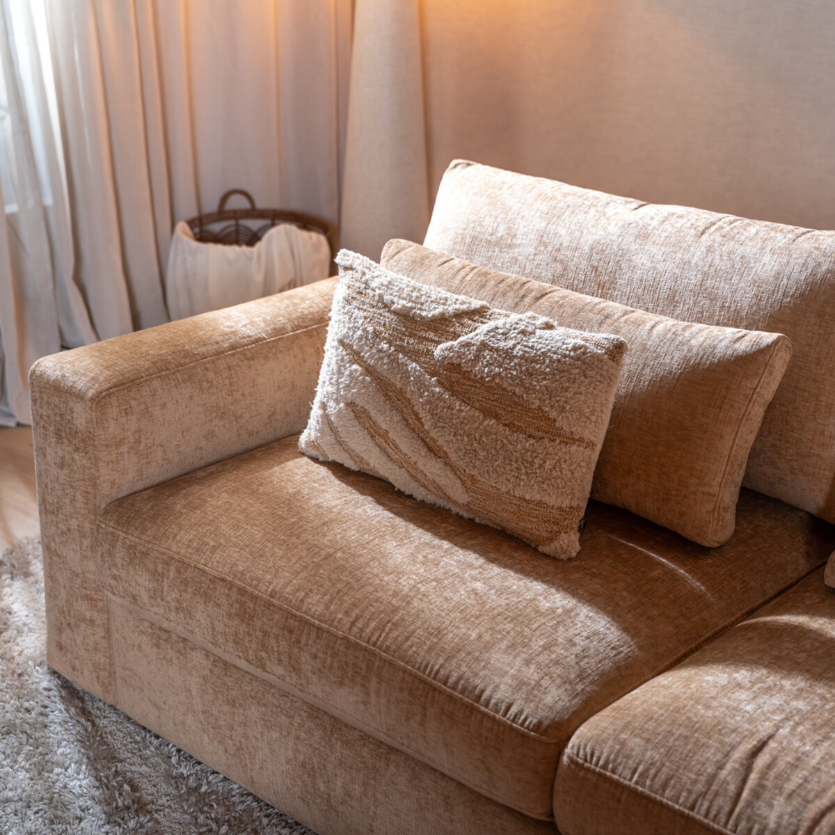 Das 3-Sitzer Sofa Kyle ist die moderne Lösung für stilbewusstes und komfortables Wohnen. Mit seiner großzügigen Sitzfläche, losen Rückenkissen und dem zeitlosen Design eignet es sich perfekt für Familien oder gesellige Abende mit Freunden. Der weiche Chenille-Stoff sorgt dafür, dass du viele Jahre Freude an diesem Sofa haben wirst.