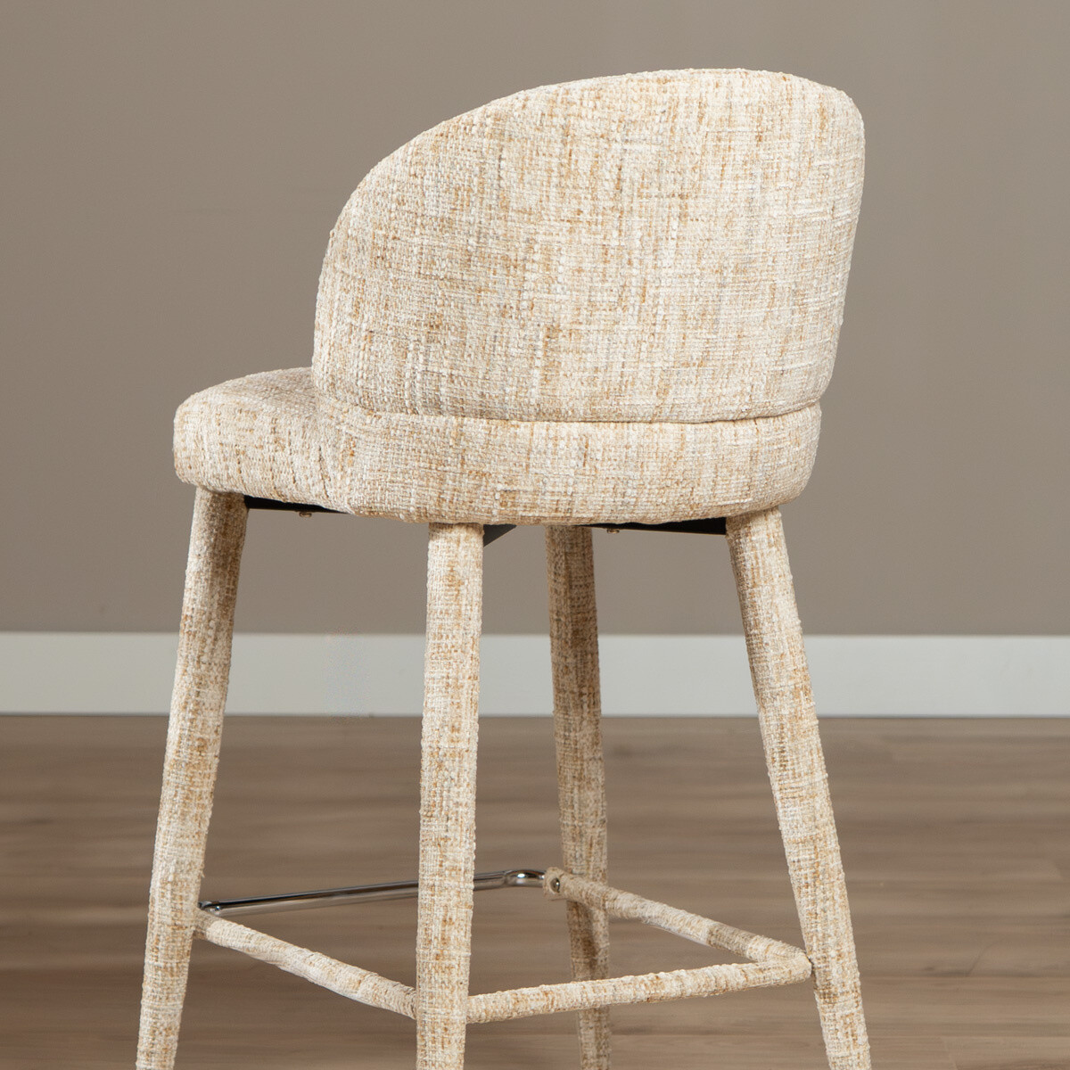 Der Charlie ist mit einem Chenille-Stoff bezogen, einem hochwertigen, grob gewebten Möbelstoff, der Stärke und Komfort perfekt vereint. Die robuste Struktur fühlt sich weich und samtartig an, während subtile Farbnuancen dem Hocker ein lebendiges und modernes Erscheinungsbild verleihen. Dank seiner wasser- und schmutzabweisenden Eigenschaften bleibt der Barhocker nicht nur schön, sondern ist auch besonders praktisch im Alltag – ideal für lange Abende an der Bar, gesellige Runden oder sogar für den intensiven gewerblichen Einsatz.