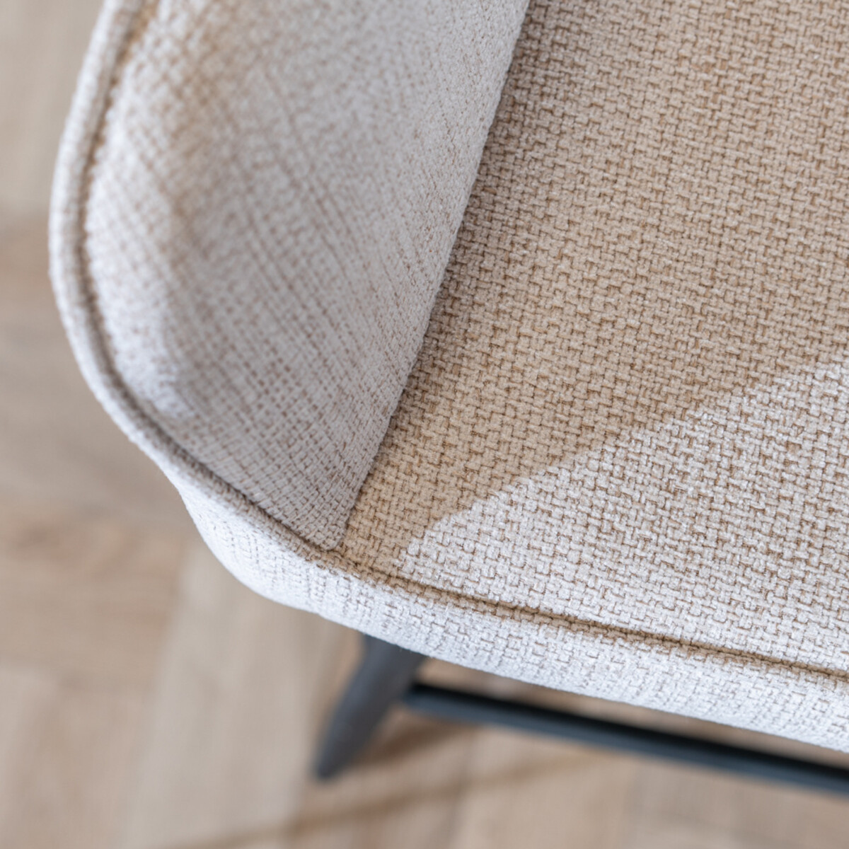 Die schwarzen Metallbeine sorgen für einen festen Stand und erhöhen die maximale Belastung des Barhockers Inga. Zudem sorgt die Kombination des dunklen Gestells mit der hellen Sitzfläche dafür, dass du den Stuhl in verschiedene Einrichtungsstile integrieren kannst. Der helle Stoff passt ideal in eine skandinavische Einrichtung. Doch durch das Metallgestell kann der Barhocker Inga auch in einem Industrial Stil zum Blickfang werden.