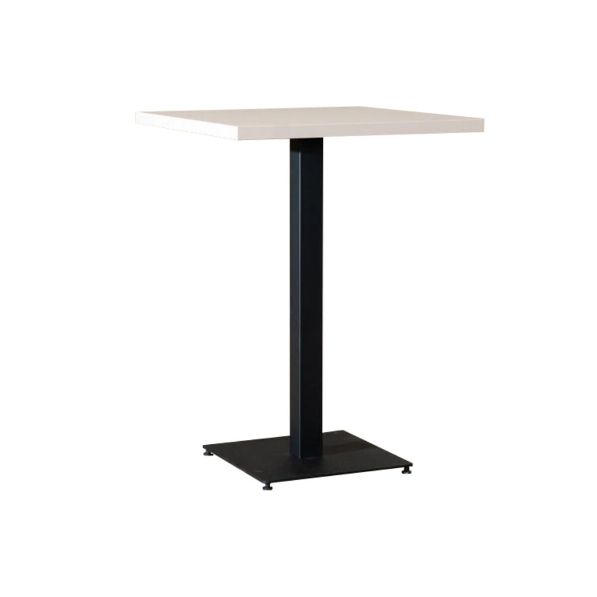 Das Gestell besteht aus schwarzem pulverbeschichtetem Metall. Der Fuß ist mittig angebracht und ist auf diese Weise kaum im Weg. Das Tischgestell ist etwas feiner. Auf diese Weise erhält der Bartisch eine luxuriöse Ausstrahlung.