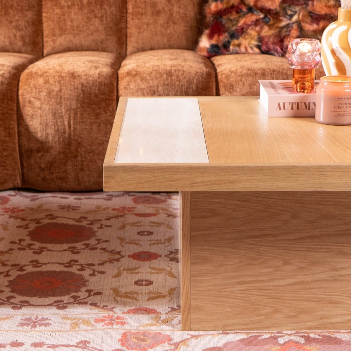 Der Couchtisch Java ist ein stilvoller Mittelpunkt für jedes Wohnzimmer. Mit dem markanten Kontrast zwischen Eichenholz und einem eingelegten Travertin-Element schafft Java eine perfekte Balance zwischen Eleganz und natürlichen Materialien.