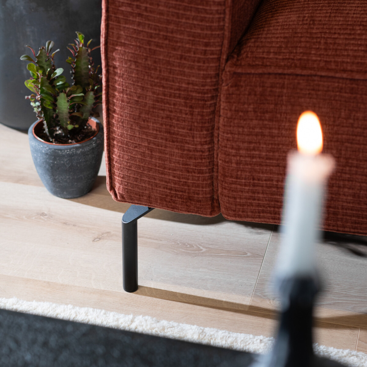 Die Beine sind aus pulverbeschichtetem Metall und verleihen dem Sofa ein lockeres Aussehen.