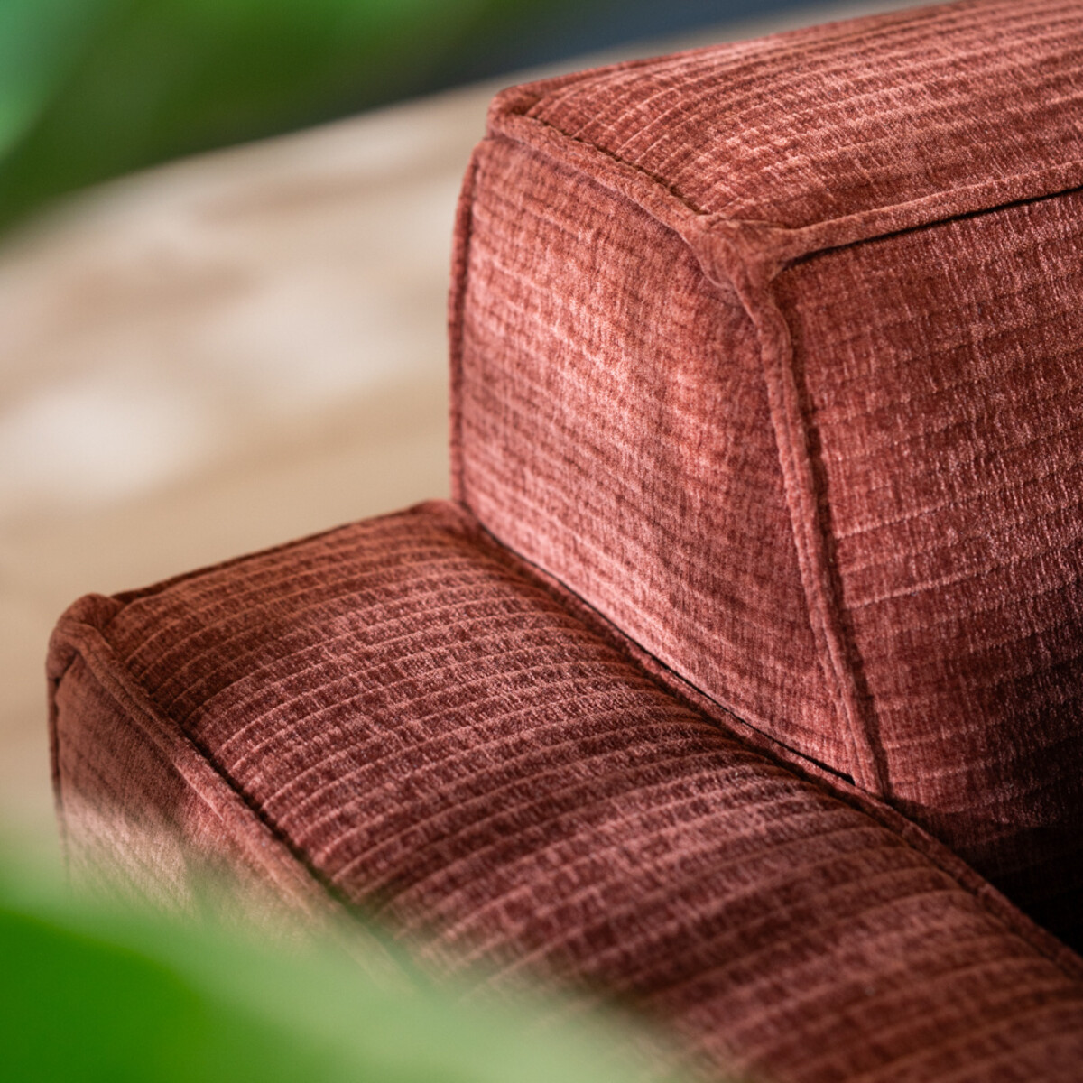 Das Ecksofa ist mit dem Stoff Barkley gepolstert. Das Einzigartige an dem Kansas-Sofa ist, dass ihm durch den Chenillestoff, der Cordstoff ähnelt, ein gestreiftes Muster gegeben wird und es glänzt. So hat es eine luxuriöse Wirkung, ist aber trotzdem super kuschelig. Er eignet sich besonders gut für Babys und den Planeten. Weil der Stoff Barkley mit einem Martindale Score von 95.000 sehr verschleißfest ist, ist die Couch super für einen intensiven Gebrauch zuhause.