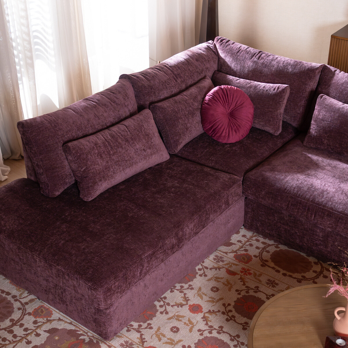 Gib nachfolgend deine E-Mail-Adresse ein, dann informieren wir dich sobald Ecksofa Kyle chenille lila links wieder vorrätig ist.