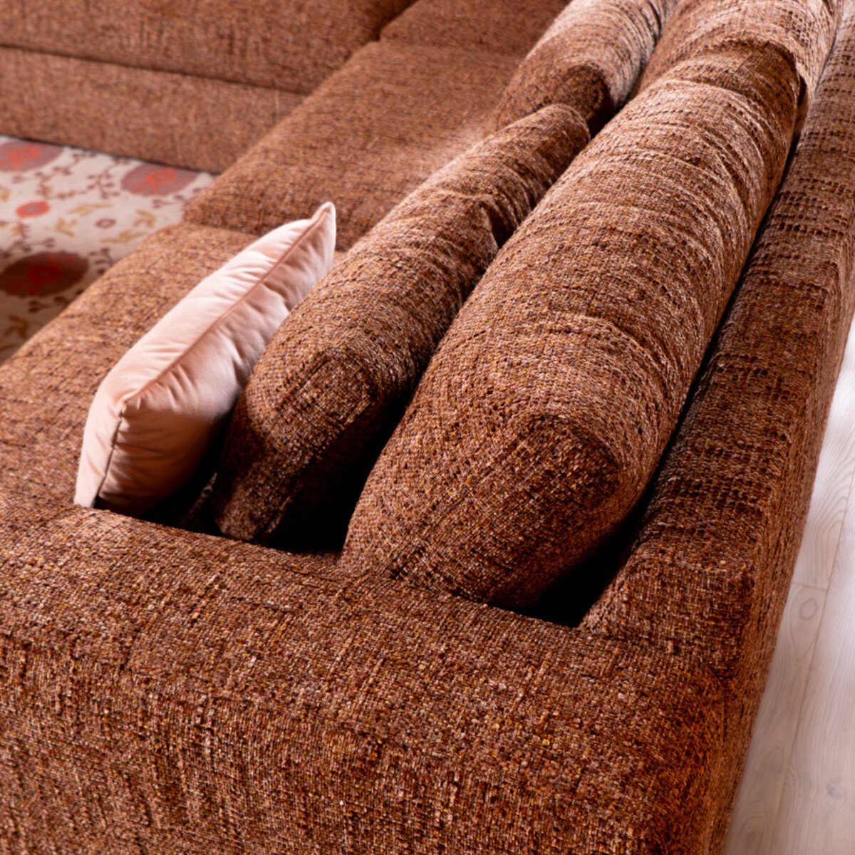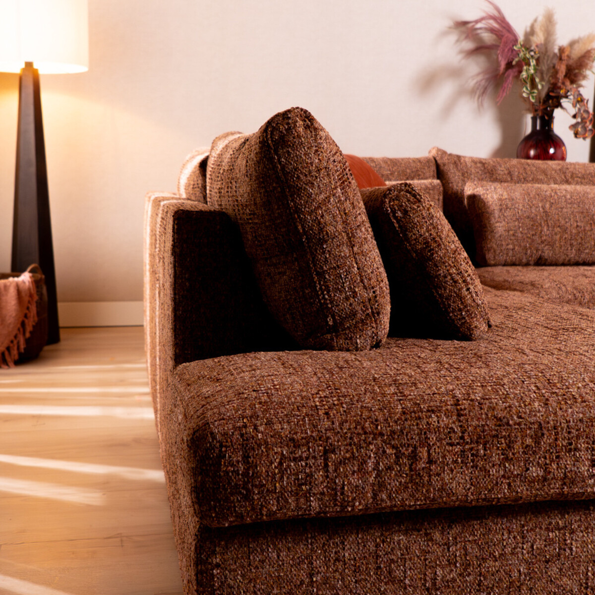 Das Ecksofa Kyle bietet eine perfekte Kombination aus Bequemlichkeit, Komfort und warmer Ausstrahlung. Dieses großzügige Sofa mit Eckaufstellung schafft sofort eine einladende Atmosphäre in deinem Wohnzimmer und eignet sich hervorragend für entspannte Familienmomente. Easy to clean und herrlich bequem, um sich nach einem langen Tag hineinzufallen.