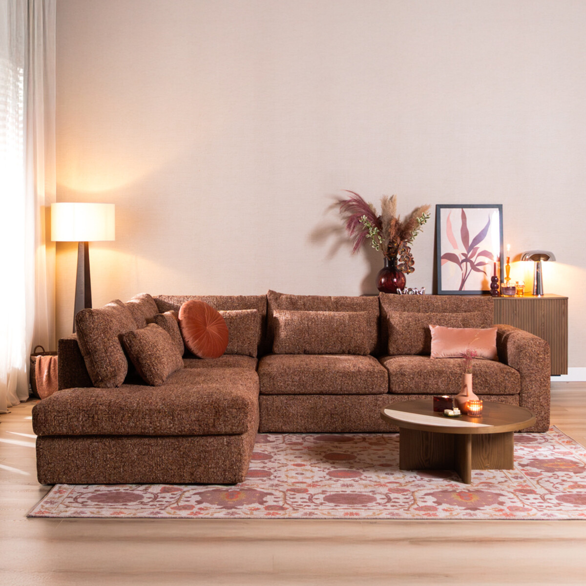 Das Ecksofa Kyle ist mit Miscanto Chenille bezogen, einem hochwertigen Stoff aus 100 % Polyester mit voller, weicher Struktur. Der Stoff ist zertifiziert und besteht den Zigarettentest (flammsicher). Mit einem Martindale-Wert von 70.000 ist dieses Sofa besonders langlebig und für intensive (tägliche) Nutzung geeignet. Der Rahmen ist robust mit Nosag-Federn, Holzplatten sowie Buchen- und Kiefernholz ausgeführt, wodurch das Sofa eine lange Lebensdauer und eine stabile Basis erhält.