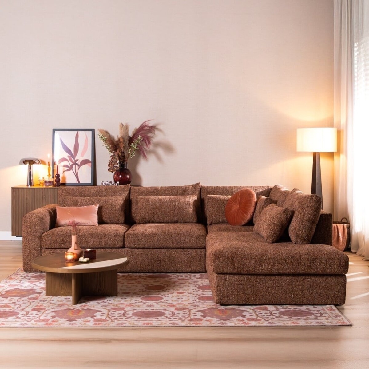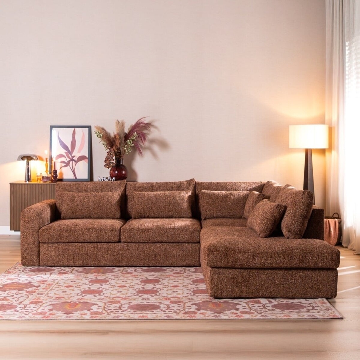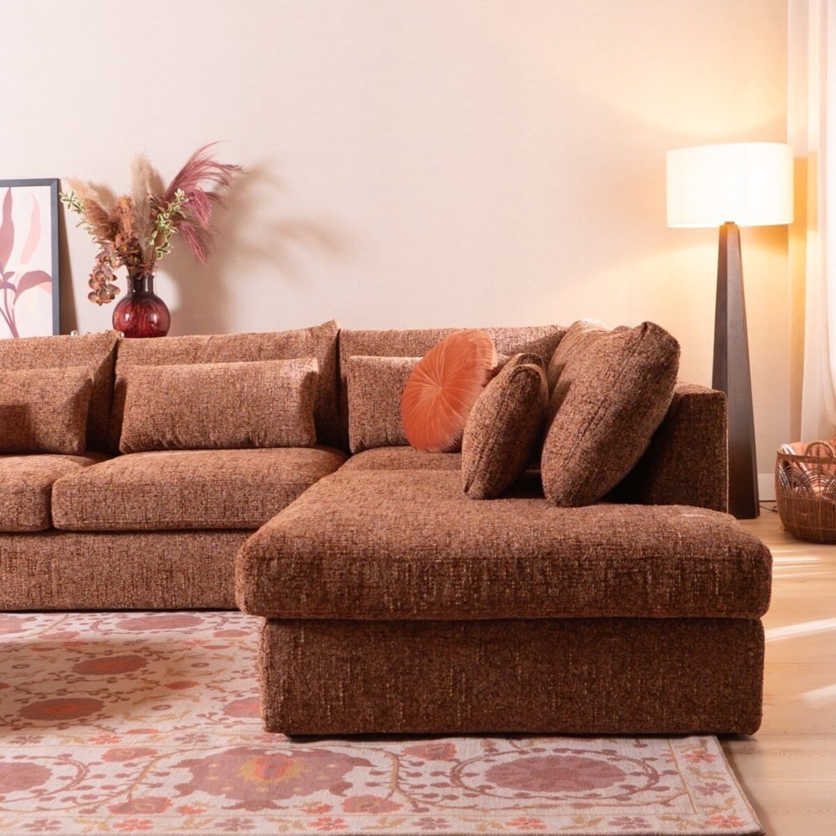 Das Ecksofa Kyle bietet eine perfekte Kombination aus Bequemlichkeit, Komfort und warmer Ausstrahlung. Dieses großzügige Sofa mit Eckaufstellung schafft sofort eine einladende Atmosphäre in deinem Wohnzimmer und eignet sich hervorragend für entspannte Familienmomente. Easy to clean und herrlich bequem, um sich nach einem langen Tag hineinzufallen.