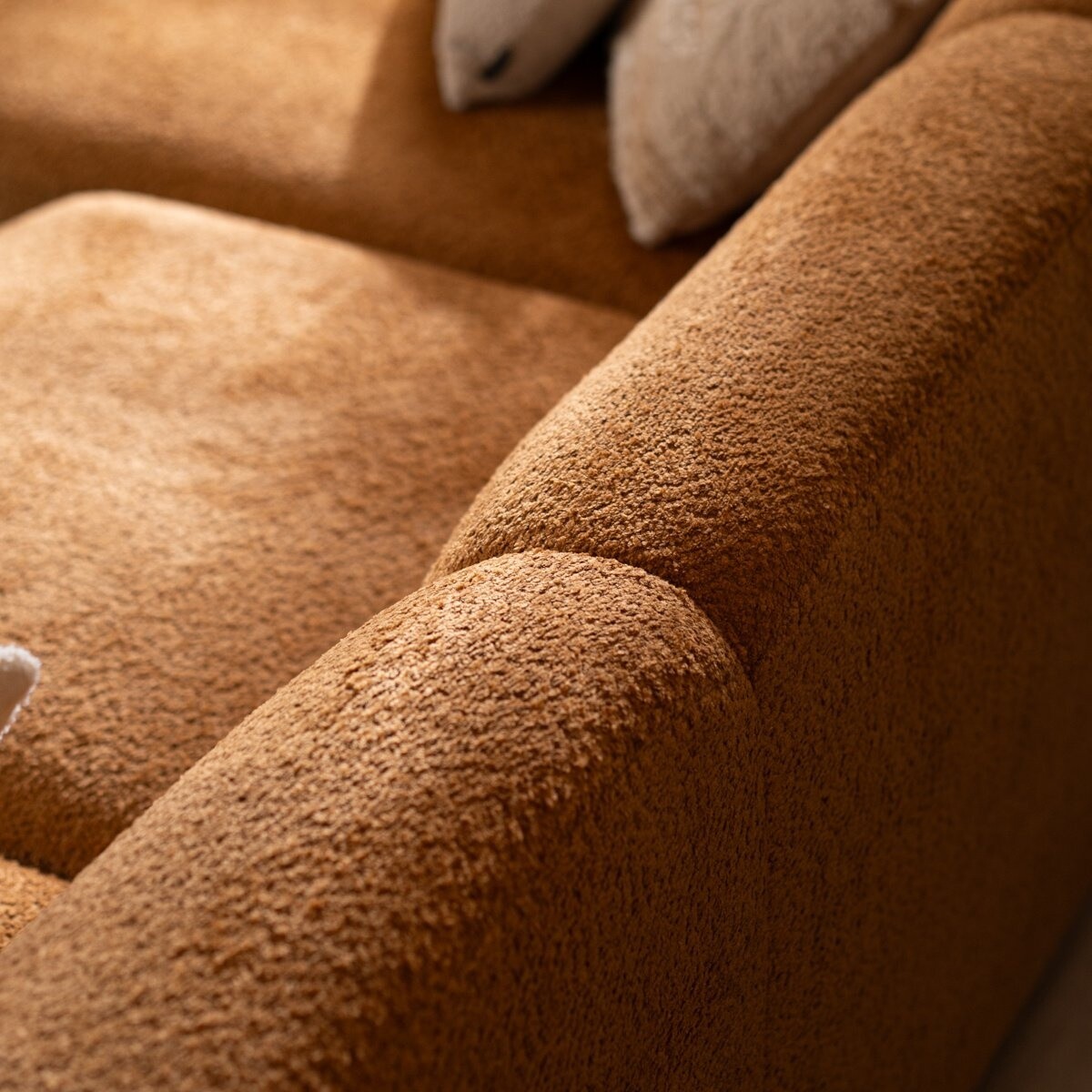 Das Maine ist mit einem strapazierfähigen Stoff aus 100 % Polyester bezogen. Mit einer Martindale-Score von 45.000 ist der Stoff robust genug für den Alltag. Die Bouclé-Oberfläche fühlt sich weich an und sorgt für noch mehr Komfort.
