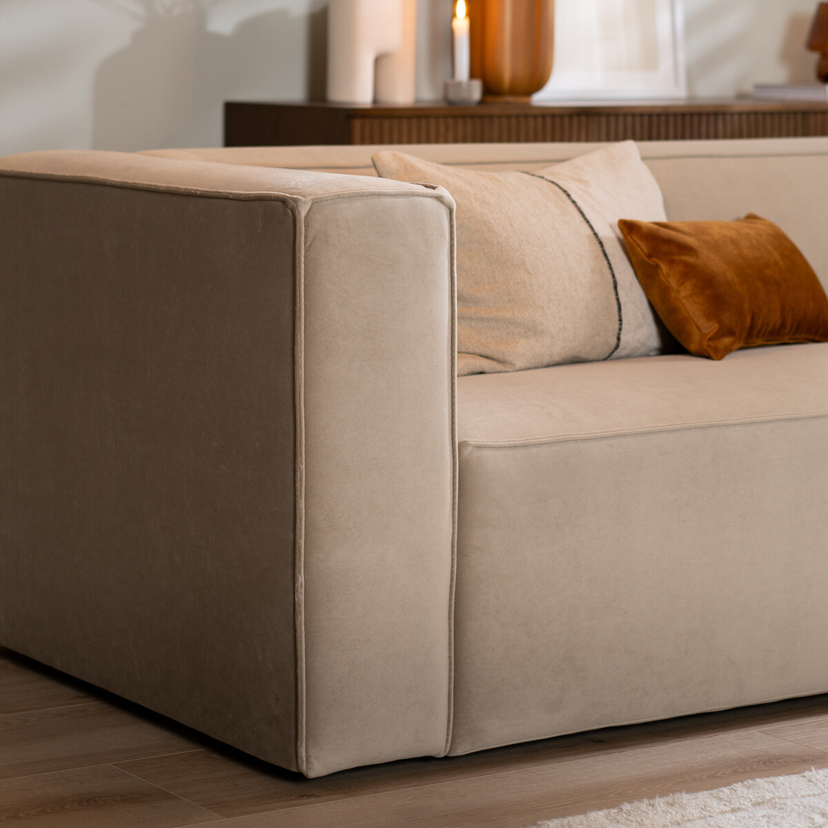 Das Samt-Sofa Memphis hat ein elegantes Design mit luxuriöser Ausstrahlung dank seiner weichen Samtpolsterung. Für zusätzliche Atmosphäre kannst du schöne Zierkissen hinzufügen. Das Sofa hat eine etwas festere Sitzfläche und eine niedrigere Rückenlehne, so dass es weniger geeignet ist, wenn du ein weiches Sofa suchst, auf dem du dich beim Fernsehen ganz hinlegen kannst. Dank seines schlichten Aussehens passt das Ecksofa in verschiedene Einrichtungsstile. Das Memphis-Sofa ist in verschiedenen Farben, Größen und Materialien erhältlich.