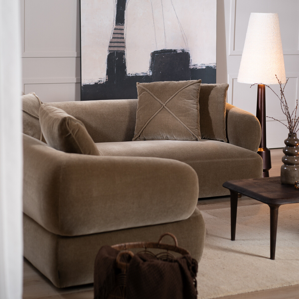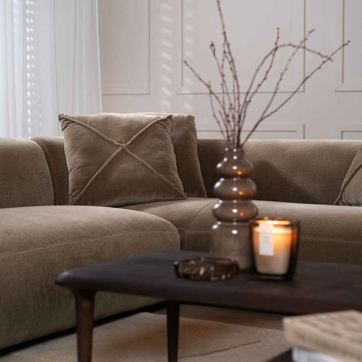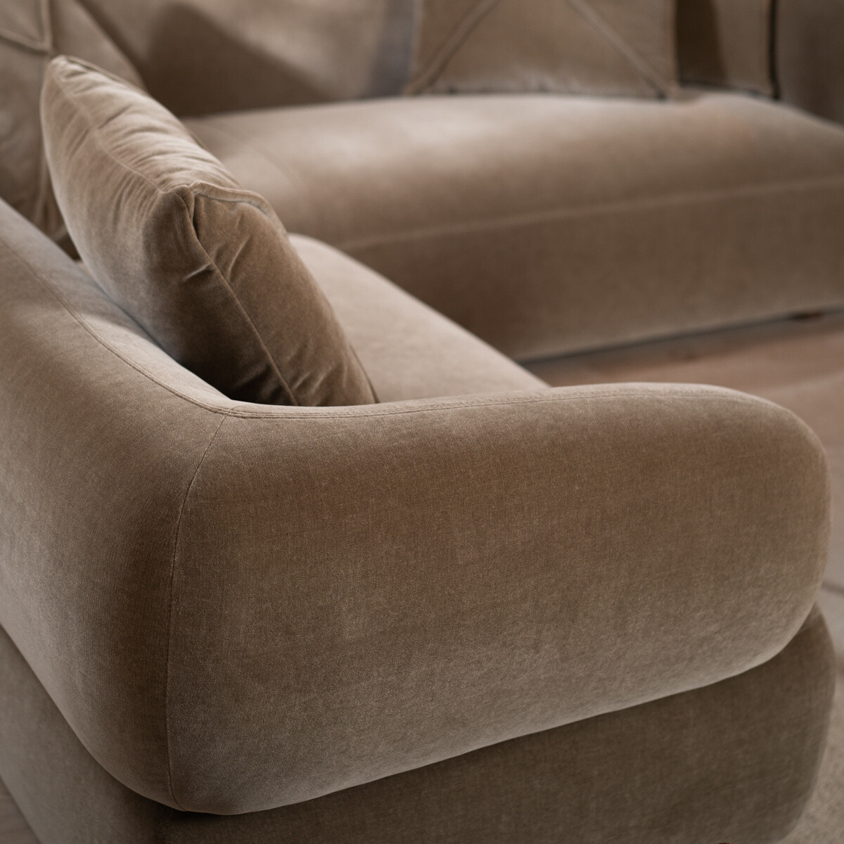 Das Ecksofa Palermo ist ein sehr komfortables Samtsofa und wird mit fünf Kissen geliefert. Das wasserabweisende Sofa überzeugt mit einer unglaublich gemütlichen Polsterung. Das Samtsofa ist dank der gepolsterten Armlehnen und den mitgelieferten Kissen im gleichen Stoff sehr komfortabel.