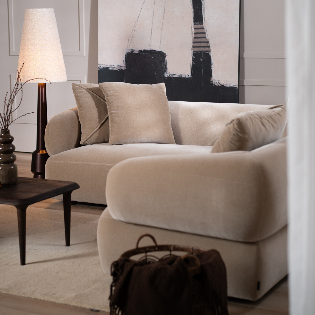 Das Ecksofa Palermo ist ein sehr komfortables Samtsofa und wird mit fünf Kissen geliefert. Das wasserabweisende Sofa überzeugt mit einer unglaublich gemütlichen Polsterung. Das Samtsofa ist dank der gepolsterten Armlehnen und den mitgelieferten Kissen im gleichen Stoff sehr komfortabel.