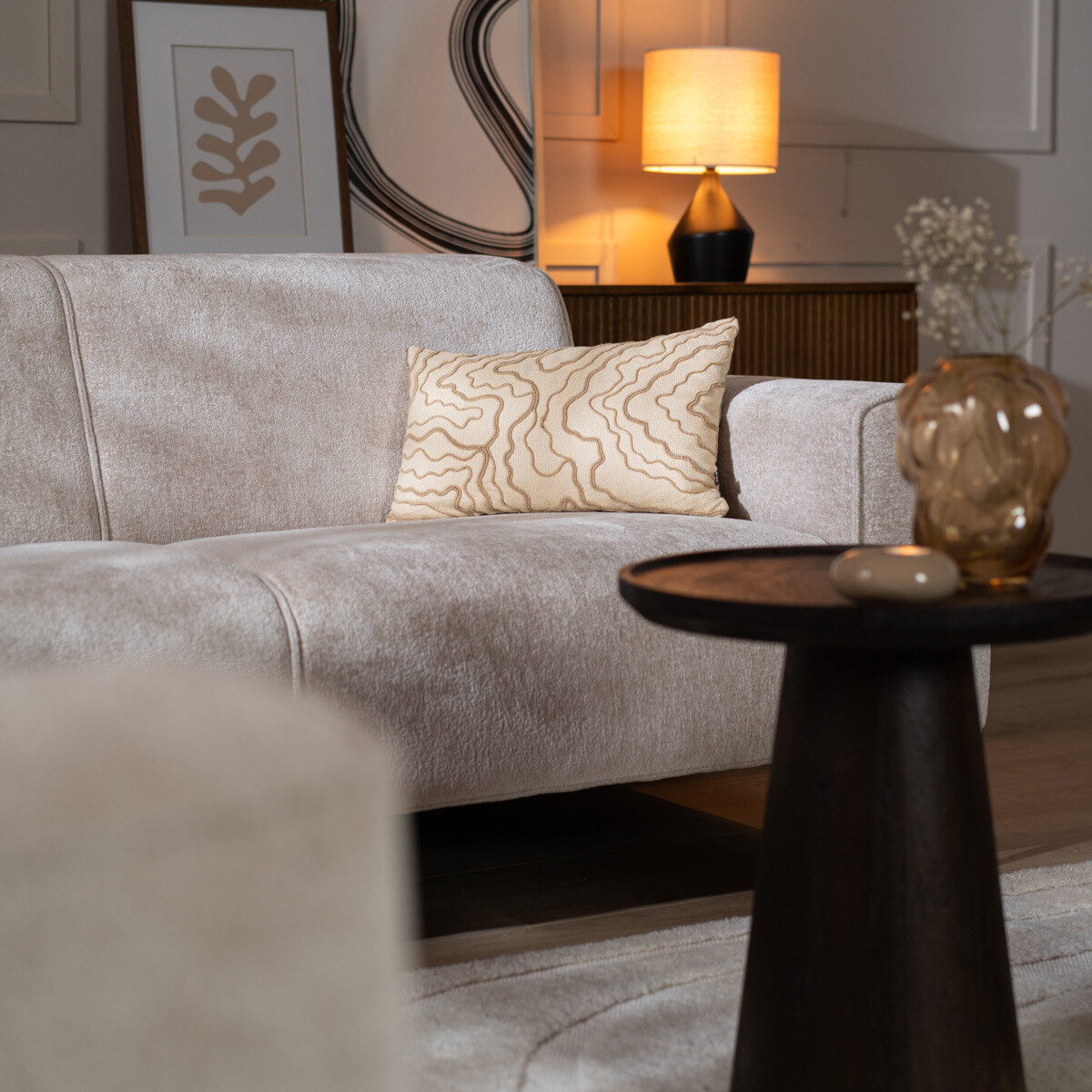 Das Sofa Vegas aus Chenille-Stoff hat ein elegantes Design und fühlt sich dank der weichen Chenille-Polsterung luxuriös an. Die Armlehnen und festen Kissen sorgen für optimalen Komfort und eine gute Rückenunterstützung. Die breiten Armlehnen machen das Sofa auch praktisch. Mit einem Untersetzer oder Tablett können Sie auch Ihr Getränk darauf abstellen. Die skandinavische Couch sieht immer ordentlich aus, da die festen Kissen nicht verrutschen.