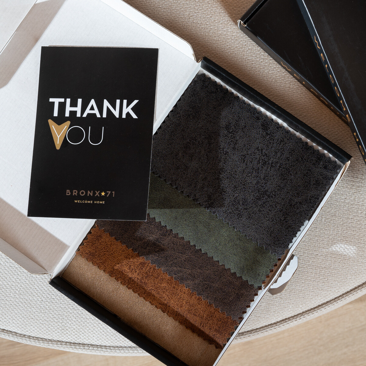 Für den Versand des Muster-Sets fällt eine Gebühr von 9,95 € zusätzlich zum Verkaufspreis an. Nach Erhalt des Sets erhältst du jedoch einen Gutschein im Wert von 15,00€, den du im Onlineshop für Produkte mit dem entsprechenden Stoff einlösen kannst. So werden die Kosten beim Kauf deiner Möbel wieder ausgeglichen.