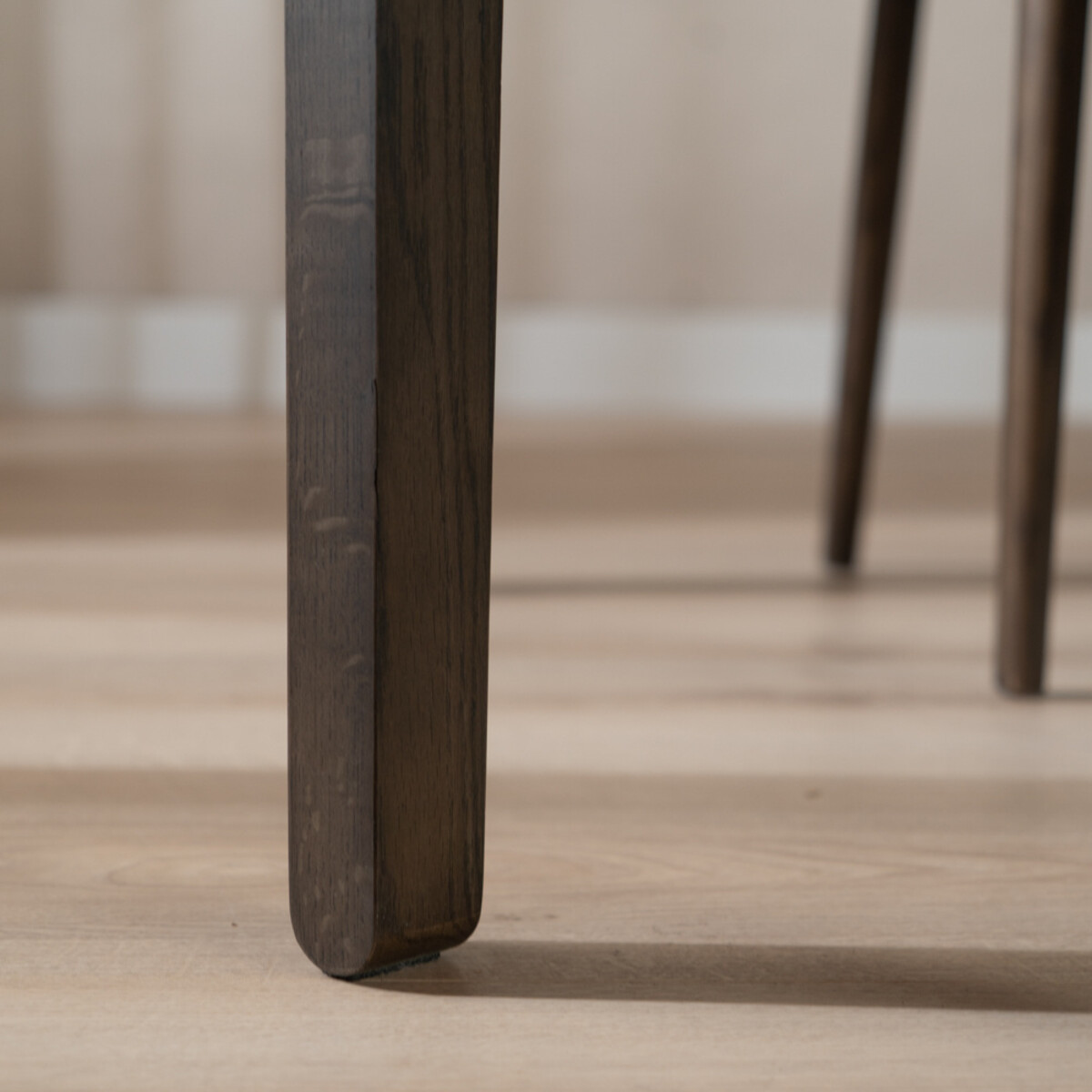 Esstisch Cala in Eiche dunkel mit den Maßen 180 x 90 cm ist eine einzigartige Kombination aus minimalistischem Design und klaren Linien. Dieser Tisch verleiht dem Raum einen Hauch von Eleganz, ohne zu dominant zu wirken. Das reduzierte Design sorgt für eine ruhige Ausstrahlung und lässt die natürliche Schönheit des Eichenholzes voll zur Geltung kommen.