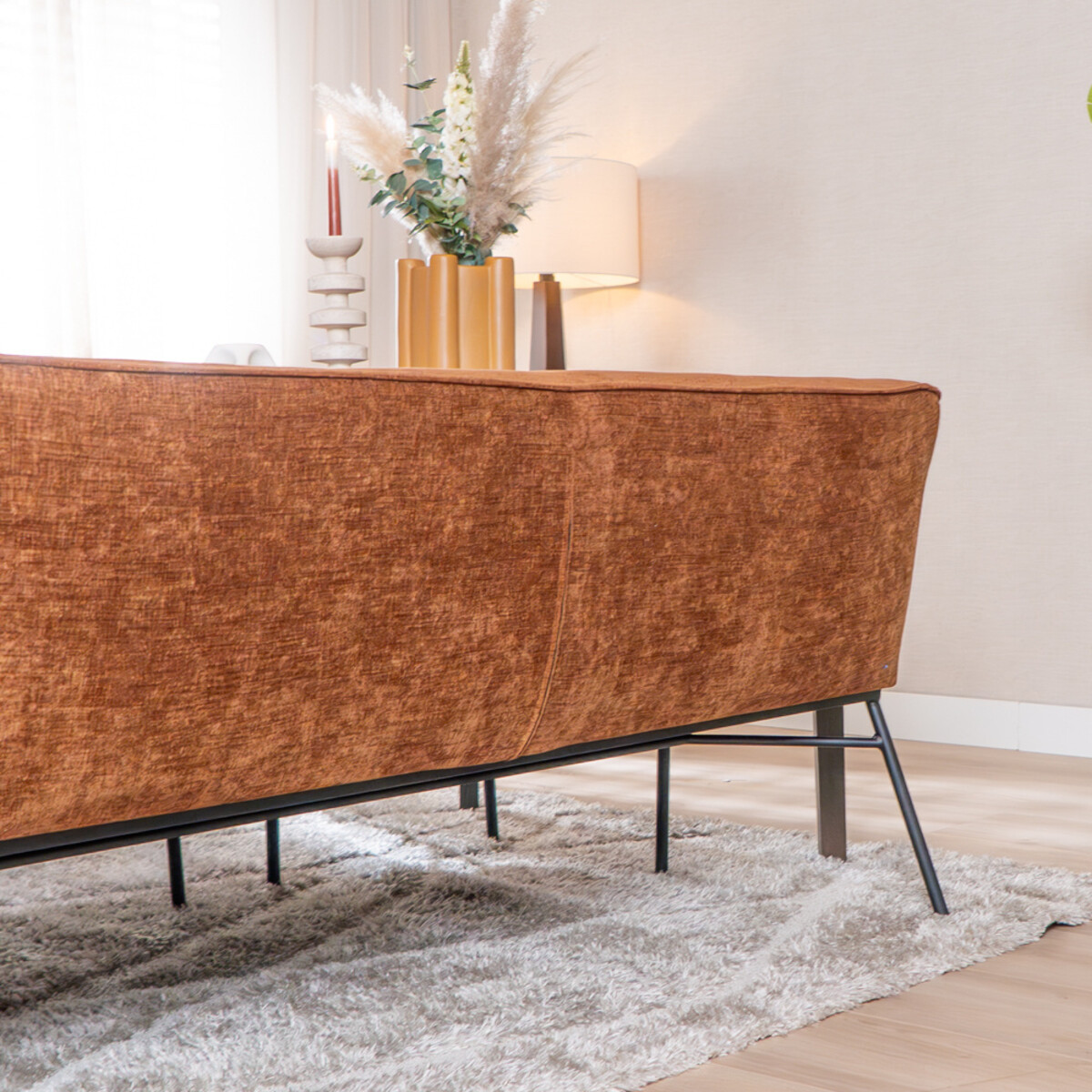 Lerne die Esszimmerbank Momo Chenille Kupfer 155 cm kennen. Diese Bank fällt durch ihre auffällige Farbe auf und bietet bequem Platz für 2 bis 3 Personen. Durch das einzigartige Design und den hochwertigen Chenille-Stoff ist sie ein echter Blickfang in deinem Interieur und besonders geeignet für alle, die Funktionalität und Stil verbinden möchten. Miss den Abstand zwischen den Tischbeinen sorgfältig, damit die Bank sicher dazwischen passt.