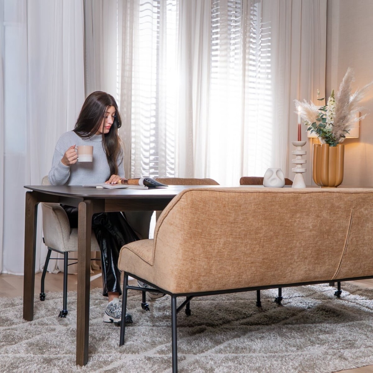 Die Pflege dieser Esszimmerbank ist unkompliziert. Selbst bei täglichem Gebrauch bleibt der Stoff mit einem leicht feuchten Tuch schön. Möchtest du sicherstellen, dass die Bank zwischen die Tischbeine passt? Miss den Abstand zwischen den Tischbeinen sorgfältig aus, so gehst du auf Nummer sicher.