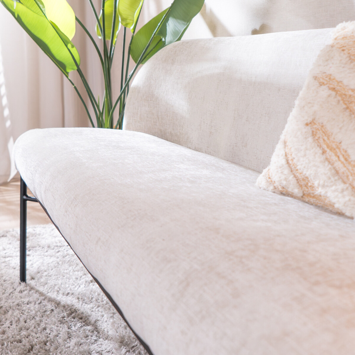 Die Esszimmerbank Momo ist mit einem weichen Chenille-Stoff in Sand gehalten und passt perfekt in ein skandinavisches Interieur. Das schlanke Untergestell sorgt für Stabilität und dank hochwertiger Nosag-Federung genießt du langanhaltenden Sitzkomfort. Der Stoff ist besonders strapazierfähig und leicht zu reinigen, ideal bei häufiger Nutzung.
