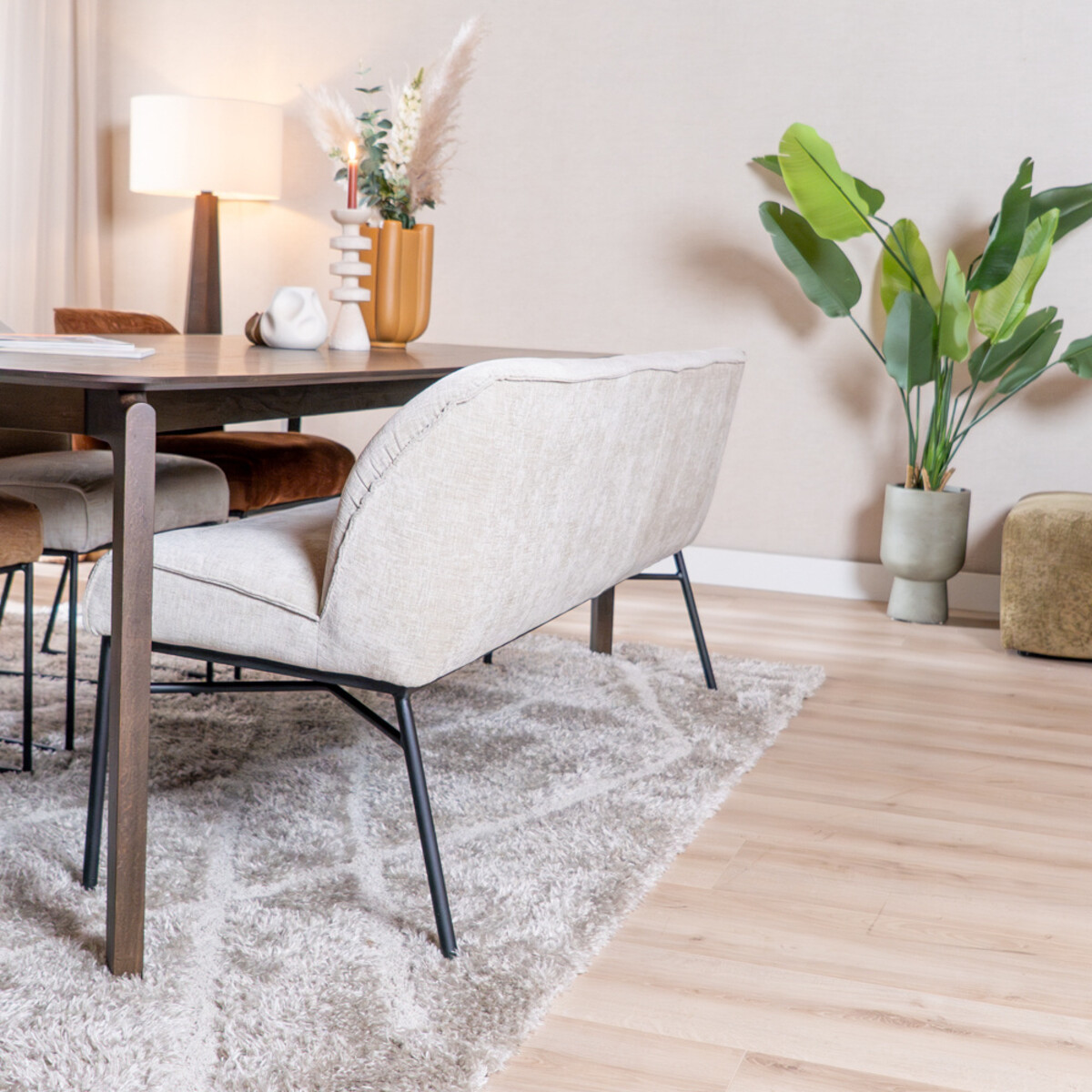 Lerne die Esszimmerbank Momo Chenille Sand mit 220 cm kennen. Eine stilvolle Esszimmerbank für jede Essecke, ideal für 4 Personen. Dank des zeitlosen Designs und des weichen Sitzkomforts verleiht sie deinem Esszimmer eine luxuriöse Ausstrahlung, während du gemeinsame Momente am Tisch genießt.