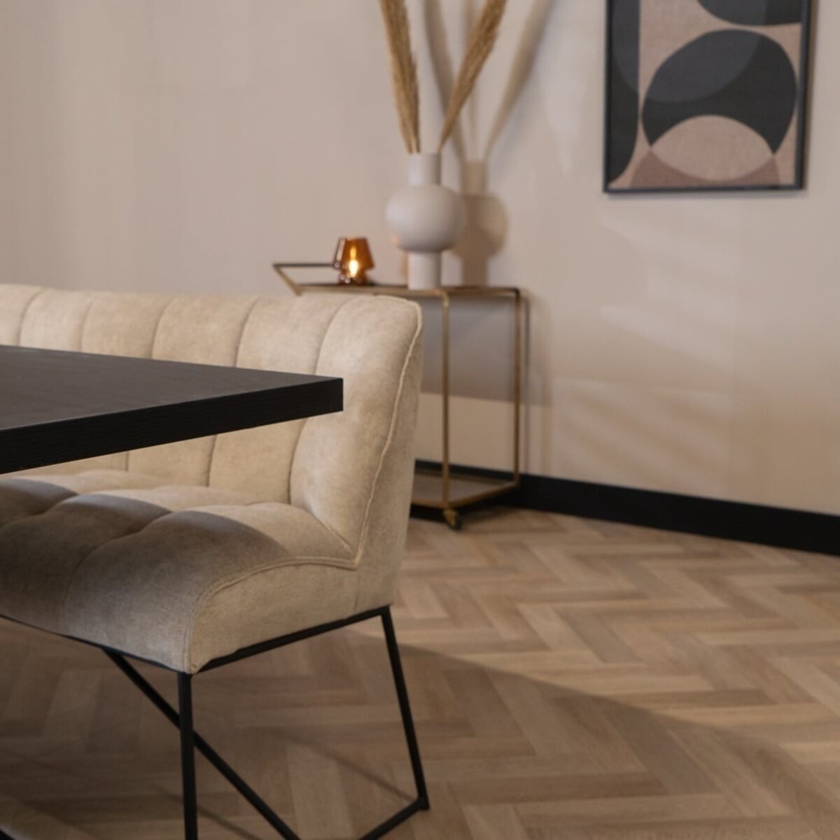 Diese gepolsterte Sitzbank Jelle lädt zu langen, gemütlichen Abenden mit Freunden und der Familie am Esstisch ein. Die Bank passt perfekt in ein modernes Interieur, doch kann auch ein Hingucker in einer industriellen oder skandinavischen Einrichtung sein. Egal, zu welchem Stil du sie kombinieren möchtest: Die Esszimmerbank wird in jedem Fall mit ihrem hohen Sitzkomfort aufgrund des Federkerns ein Highlight in deinem Zuhause!