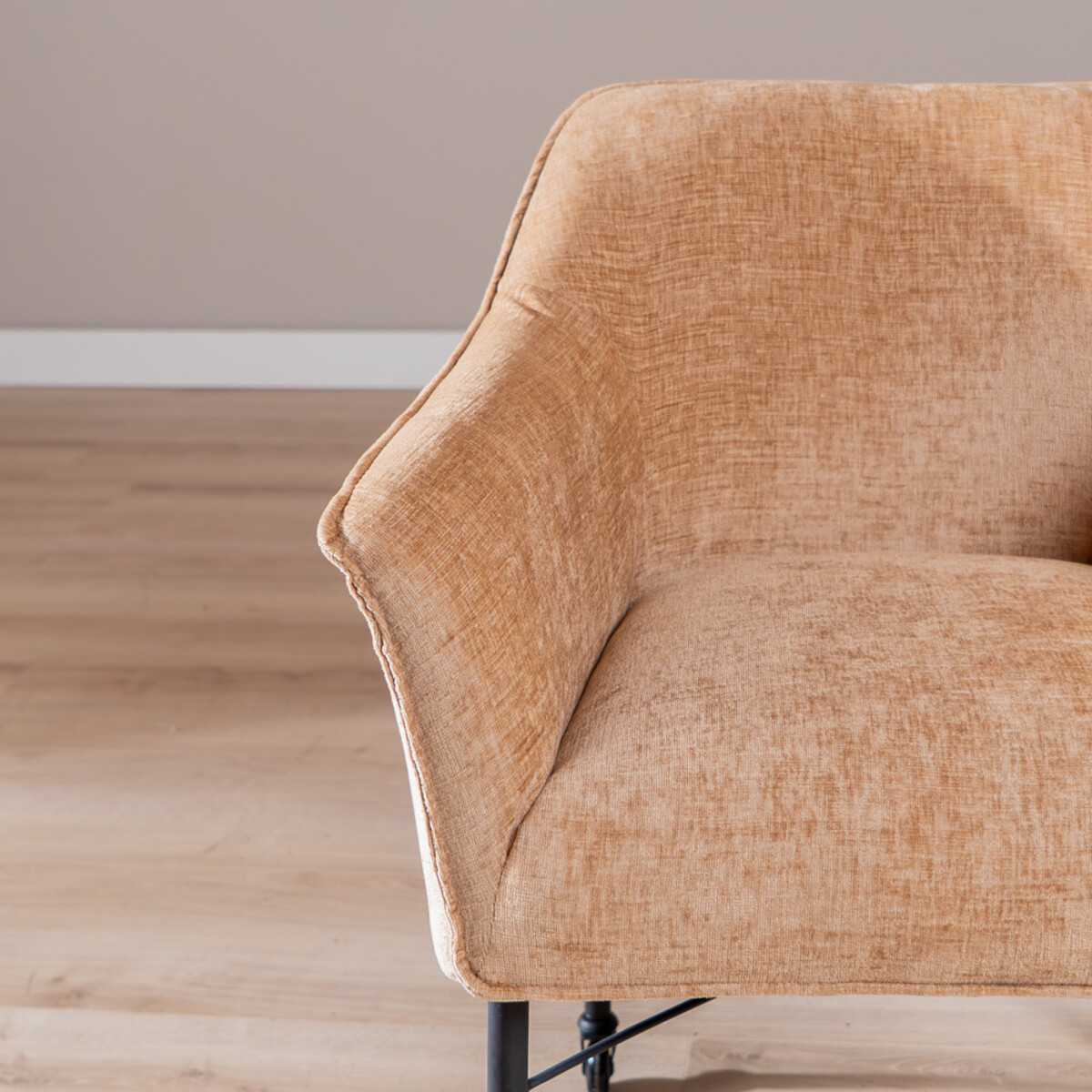 Was den Enzo besonders macht, sind die Nosag-Federungen in der Sitzfläche, die für einen außergewöhnlich hohen Sitzkomfort sorgen. Der Stuhl ist mit einem strapazierfähigen Chenille-Stoff in einer sanften Peachfarbe bezogen und passt perfekt in ein skandinavisches Interieur, in dem Ruhe und Funktionalität zusammenkommen. Die großzügige Sitzfläche bietet ausreichend Platz für ein entspanntes Dinner.