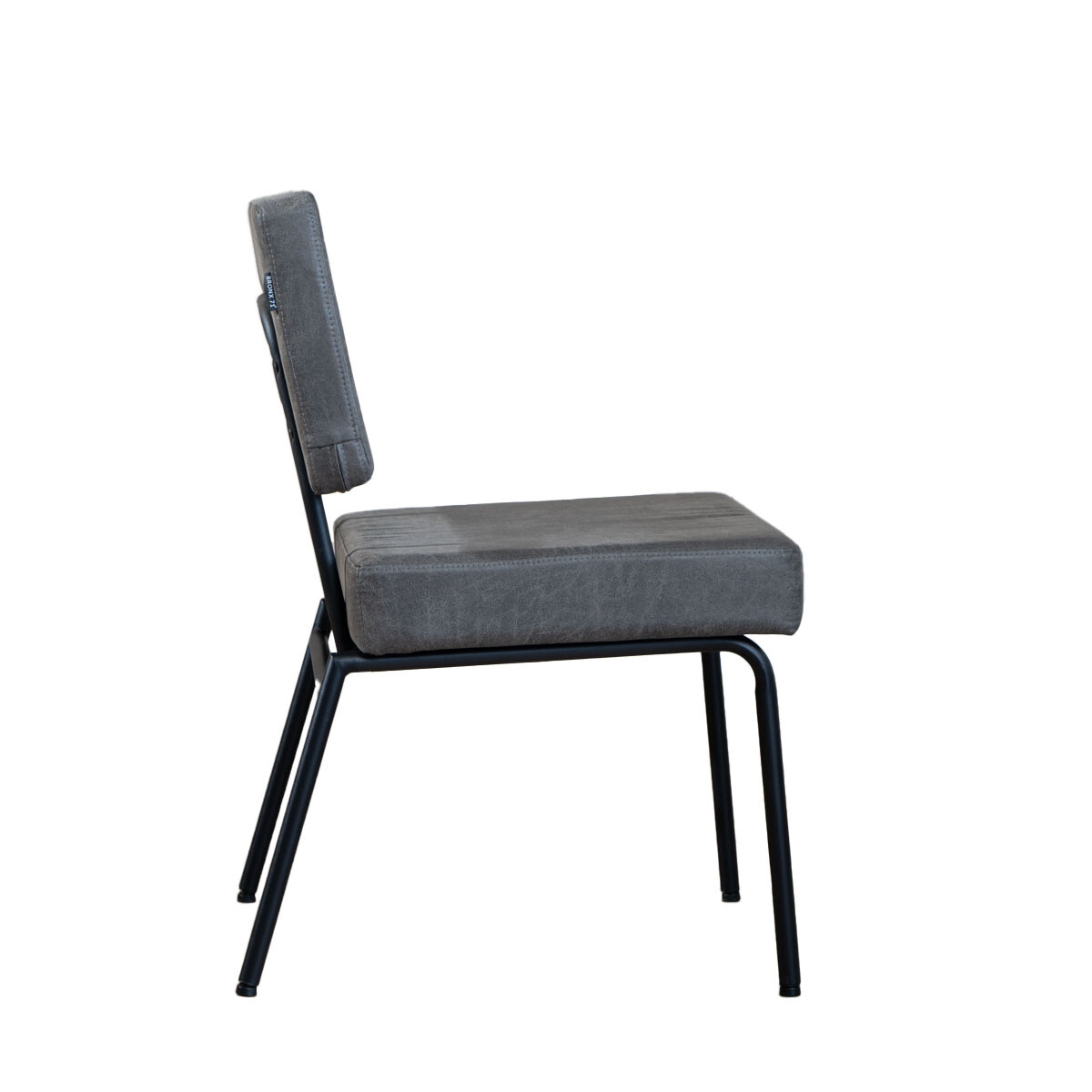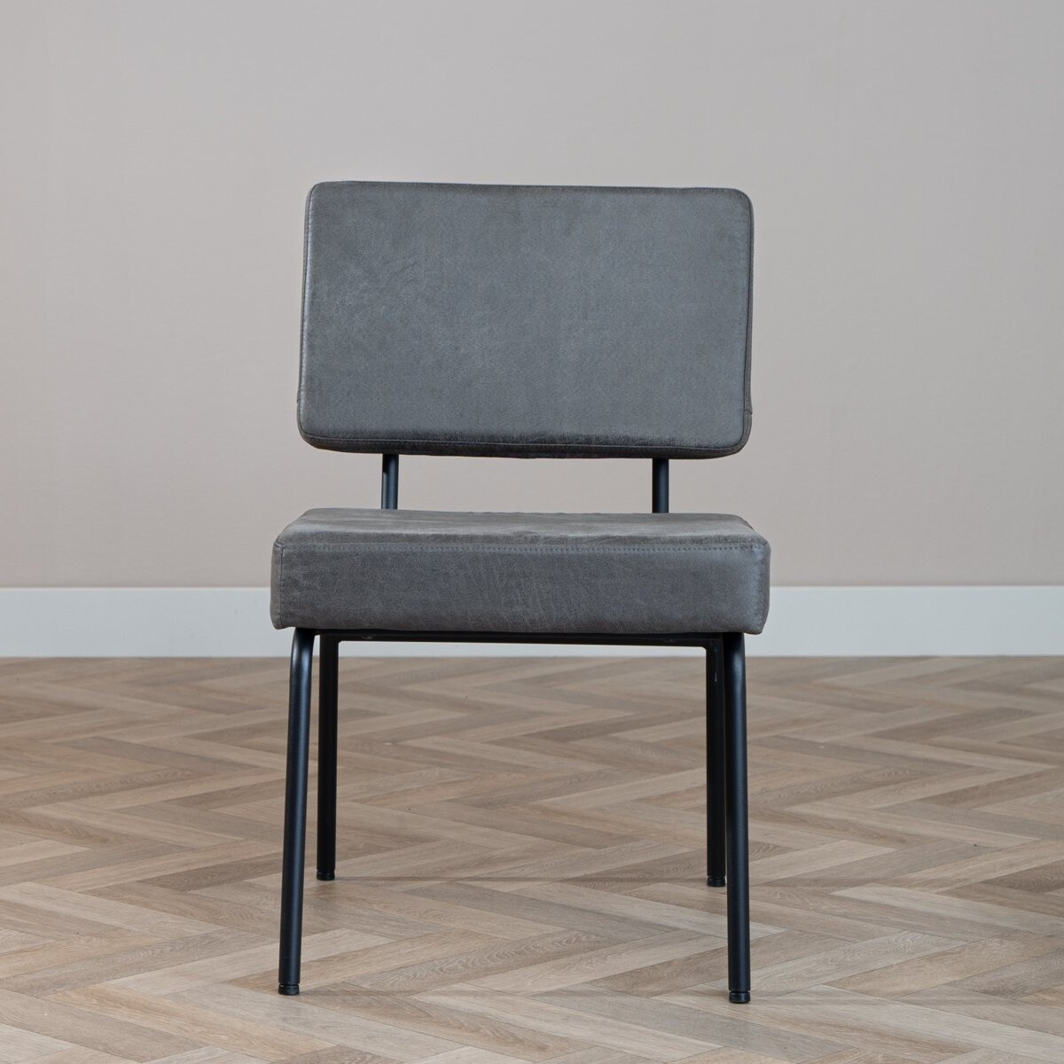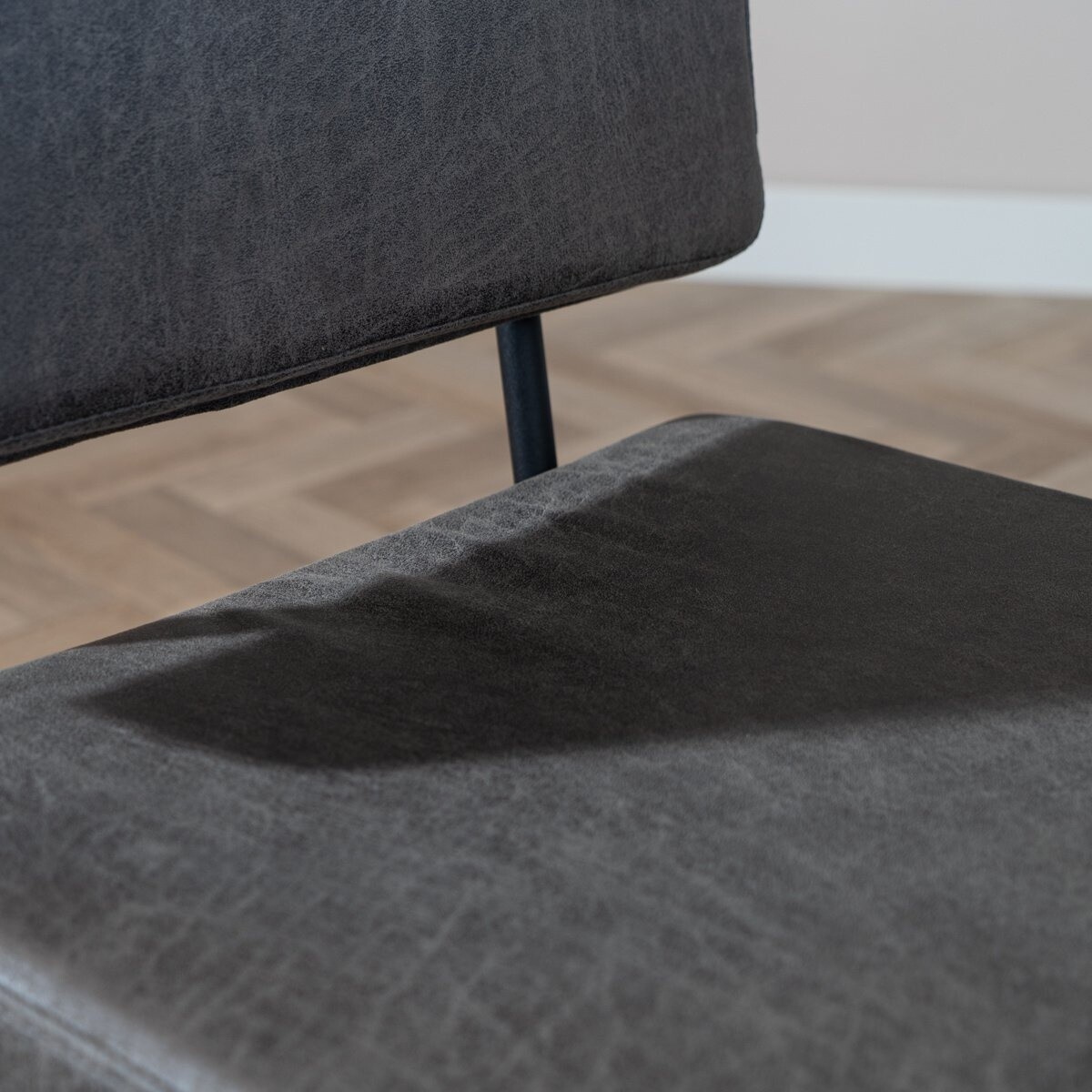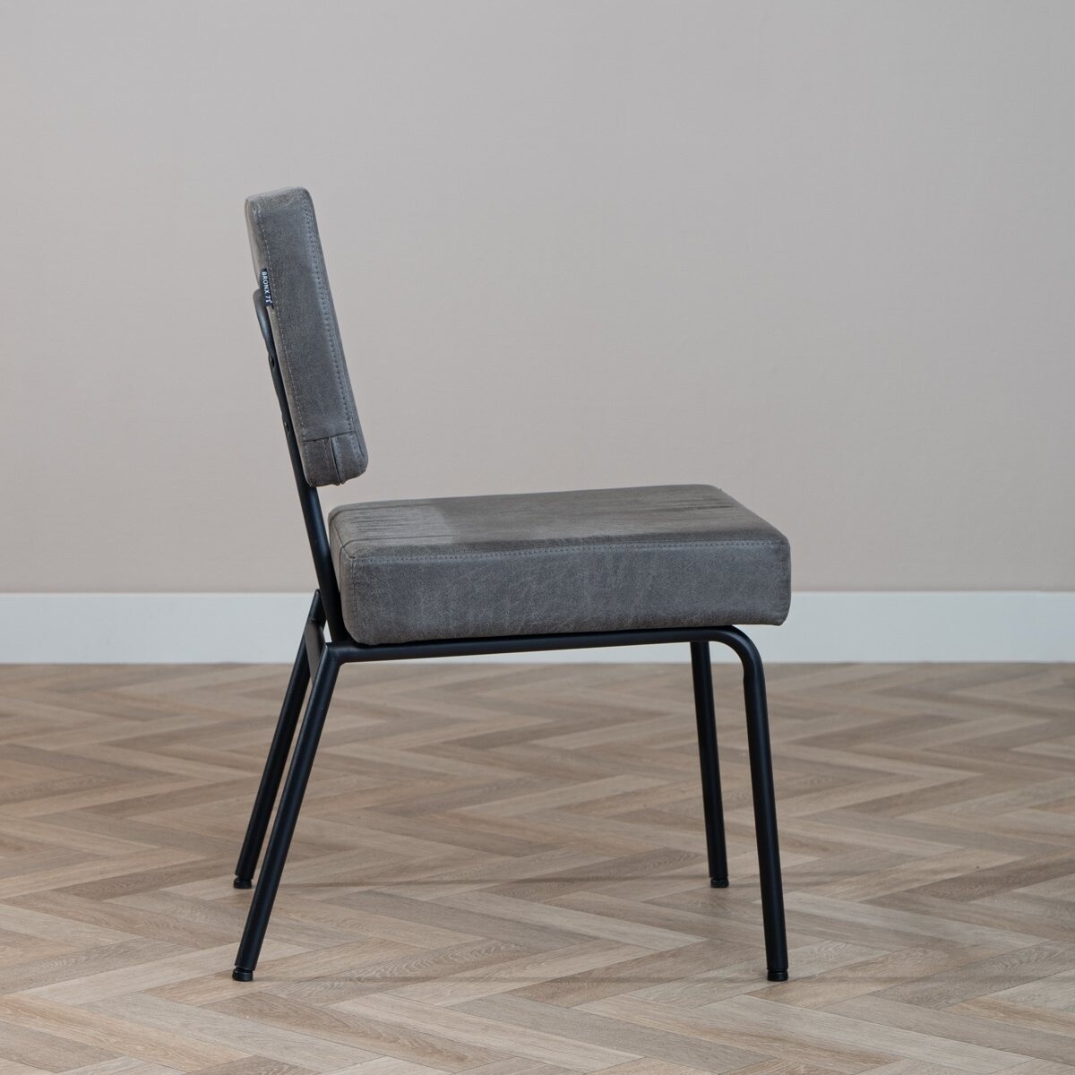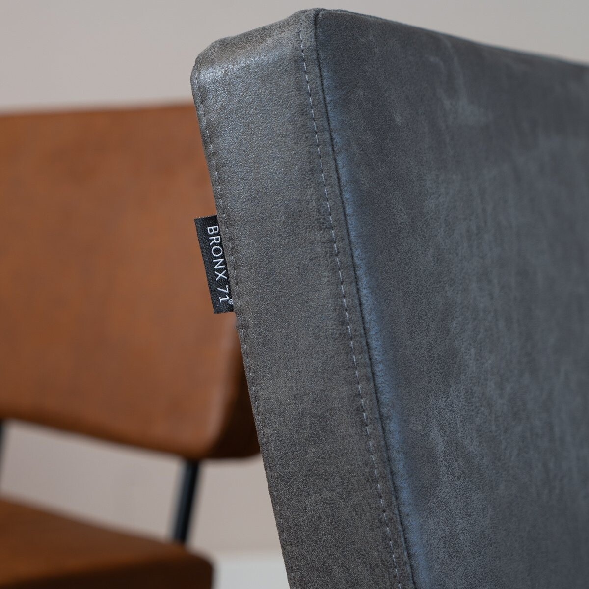 Polsterstuhl Espen besteht aus Eco-Leder, dieses Material wird auch recyceltes Leder genannt und ist sehr nachhaltig. Eco-Leder besteht zu 70% aus Leder und zu 30% aus Polyester. Wenn Muster aus Lederhäuten geschnitten werden, bleiben immer Reste über. Diese Reststücke werden zermahlen und mit Polyester kombiniert. Auf diese Weise entsteht Eco-Leder. Eco-Leder hat einige Vorteile gegenüber 100% Leder. Es ist einfacher sauber zu halten und feuchtigkeitsbeständig, Feuchtigkeit wird nicht absorbiert wodurch keine Flecken entstehen. Das Gestell des Espen Stuhls besteht aus schwarzem pulverbeschichtetem Metall - die perfekte Kombination im Industrial Design.