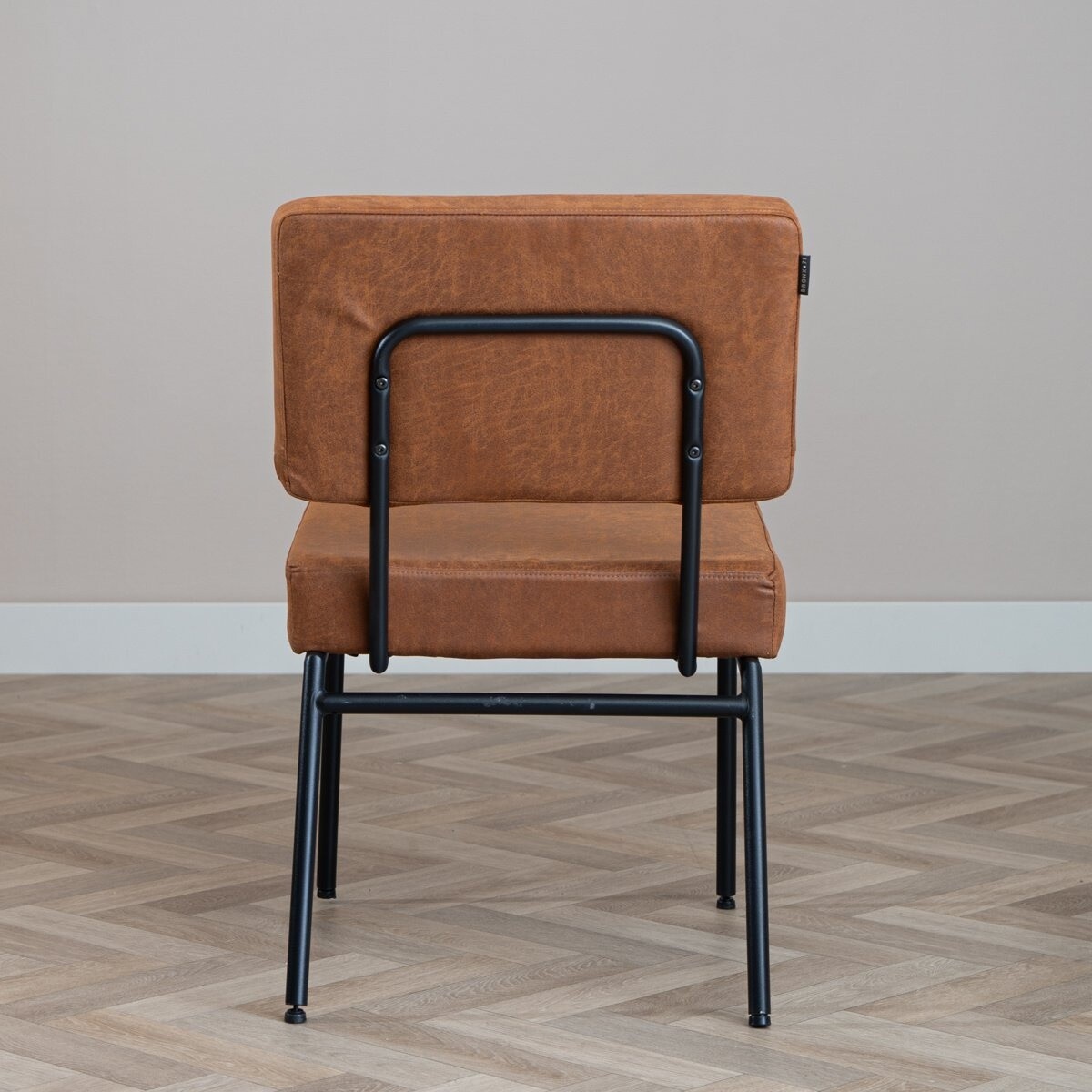Polsterstuhl Espen besteht aus Eco-Leder, dieses Material wird auch recyceltes Leder genannt und ist sehr nachhaltig. Eco-Leder besteht zu 70% aus Leder und zu 30% aus Polyester. Wenn Muster aus Lederhäuten geschnitten werden, bleiben immer Reste über. Diese Reststücke werden zermahlen und mit Polyester kombiniert. Auf diese Weise entsteht Eco-Leder. Eco-Leder hat einige Vorteile gegenüber 100% Leder. Es ist einfacher sauber zu halten und feuchtigkeitsbeständig, Feuchtigkeit wird nicht absorbiert wodurch keine Flecken entstehen. Das Gestell des Espen Stuhls besteht aus schwarzem pulverbeschichtetem Metall - die perfekte Kombination im Industrial Design.