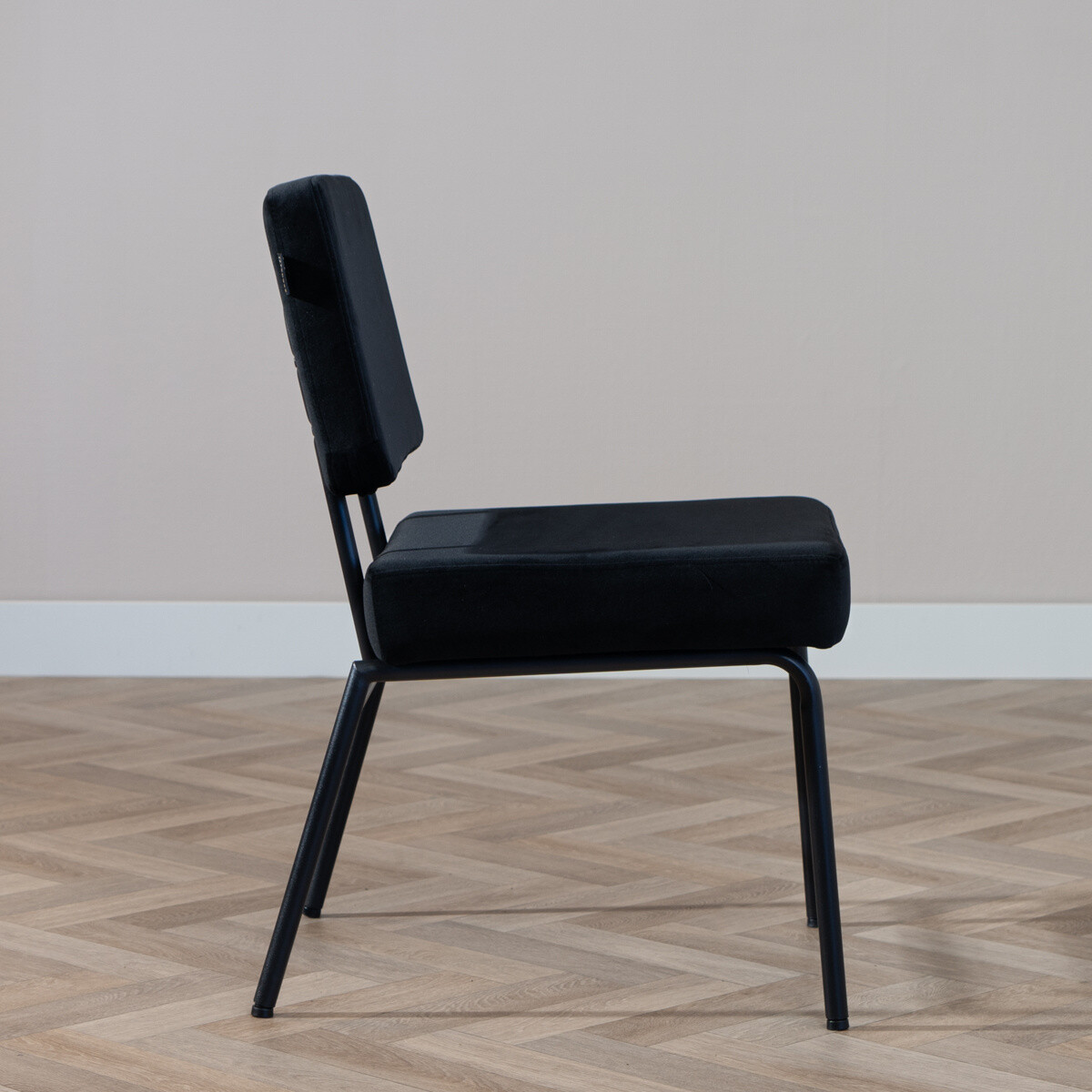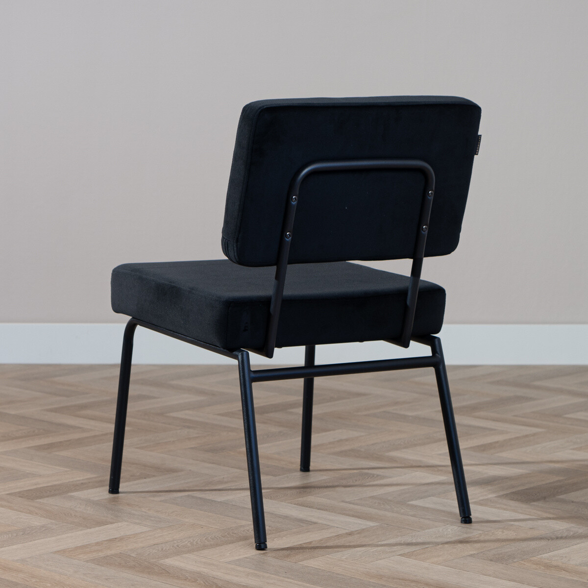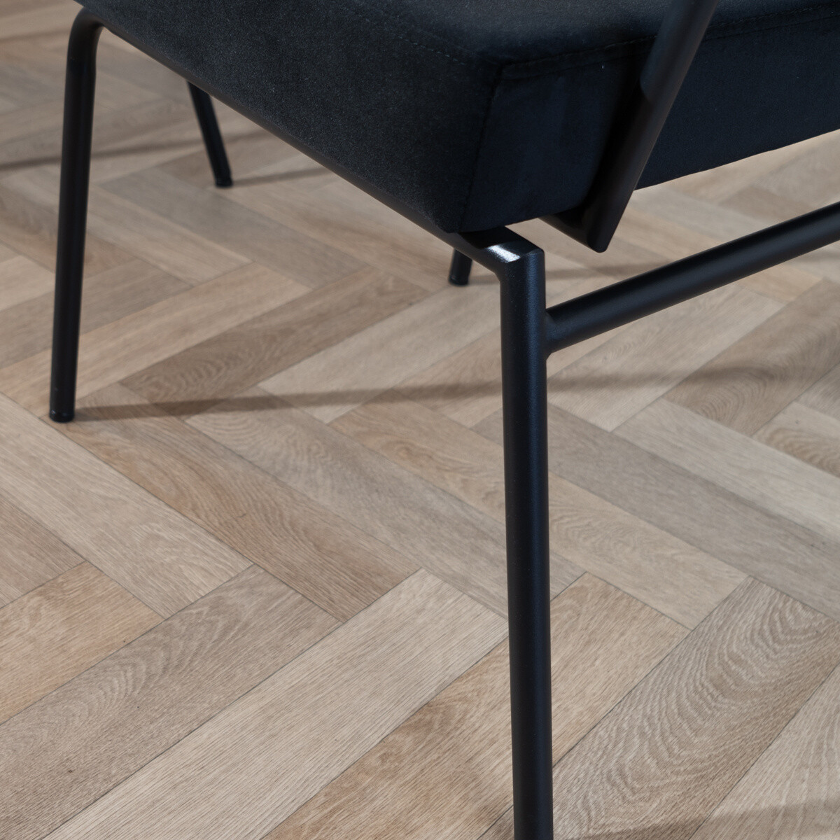 Polsterstuhl Espen wurde aus Samt gefertigt. Dieses weiche und luxuriöse Material ist wasserabweisend und damit ideal für Familien mit Kindern geeignet. Bei diesem Material ist es kein Problem, wenn einmal etwas daneben geht. Der Stoff saugt die Flüssigkeit nicht auf, man kann diese problemlos abtupfen. Der Stoff hat zudem einen Martindale Score von 70.000 und ist damit sehr verschleißfest.