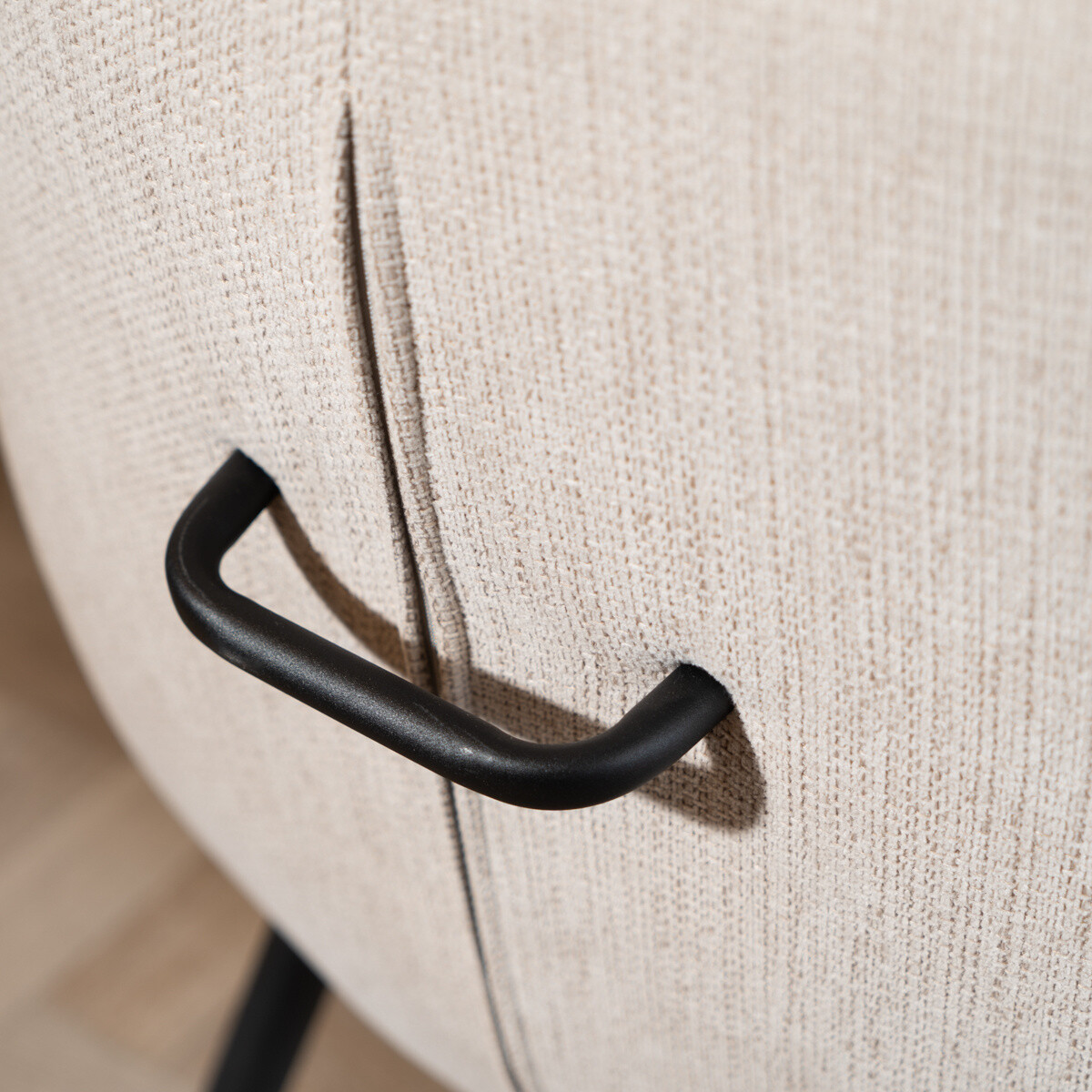 Der Esszimmerstuhl Lars im skandinavischen Design überzeugt durch viel Gemütlichkeit und einen außergewöhnlichen Stoff. Der nachhaltige Stuhl wurde aus 100% recyceltem Stoff gefertigt, welcher mit einem schwarzen Metallgestell kombiniert wird. Darüber hinaus ist der Stuhl mit einem praktischen Griff an der Rückenlehne ausgestattet, sodass du den Stuhl beim Umstellen nicht am Stoff festhalten musst. Mit diesen Stühlen verleihst du deinem Esszimmer einen ganz neuen Look - hell, subtil und minimalistisch!