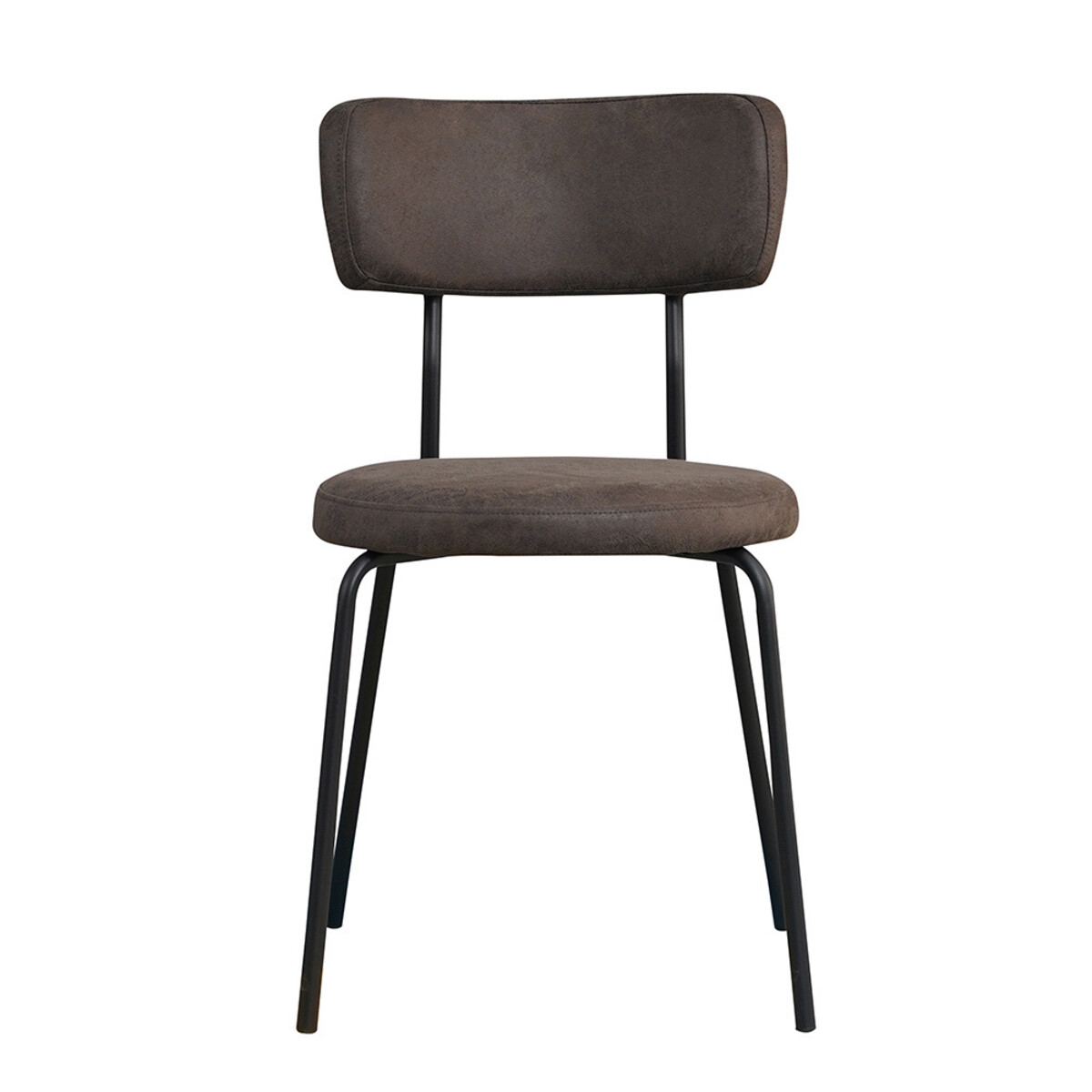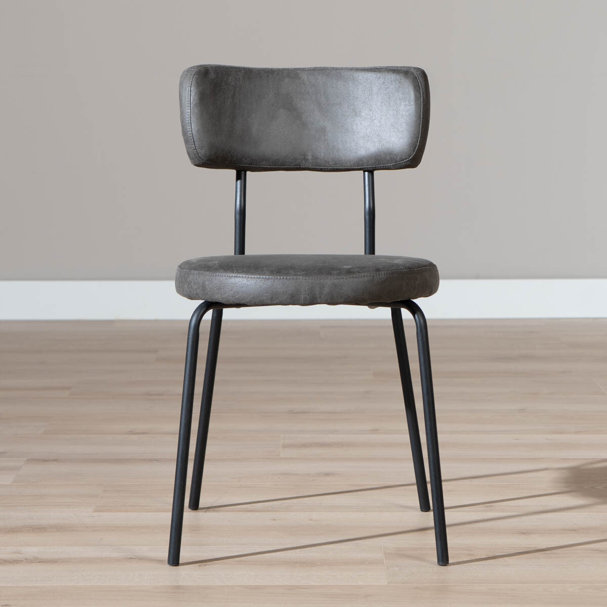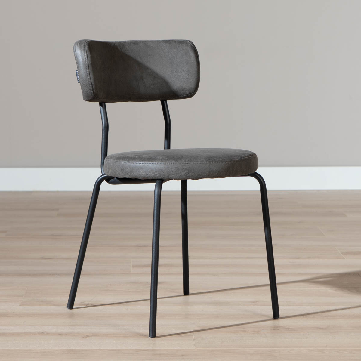 Polsterstuhl Lyon besteht aus Eco-Leder, dieses Material wird auch recyceltes Leder genannt und ist sehr nachhaltig. Eco-Leder besteht zu 70% aus Leder und zu 30% aus Polyester. Wenn Muster aus Lederhäuten geschnitten werden, bleiben immer Reste über. Diese Reststücke werden zermahlen und mit Polyester kombiniert. Auf diese Weise entsteht Eco-Leder. Eco-Leder hat einige Vorteile gegenüber 100% Leder. Es ist einfacher sauber zu halten und feuchtigkeitsbeständig, Feuchtigkeit wird nicht absorbiert wodurch keine Flecken entstehen. Das Gestell des Lyon Stuhls besteht aus schwarzem pulverbeschichtetem Metall - die perfekte Kombination im Industrial Design.