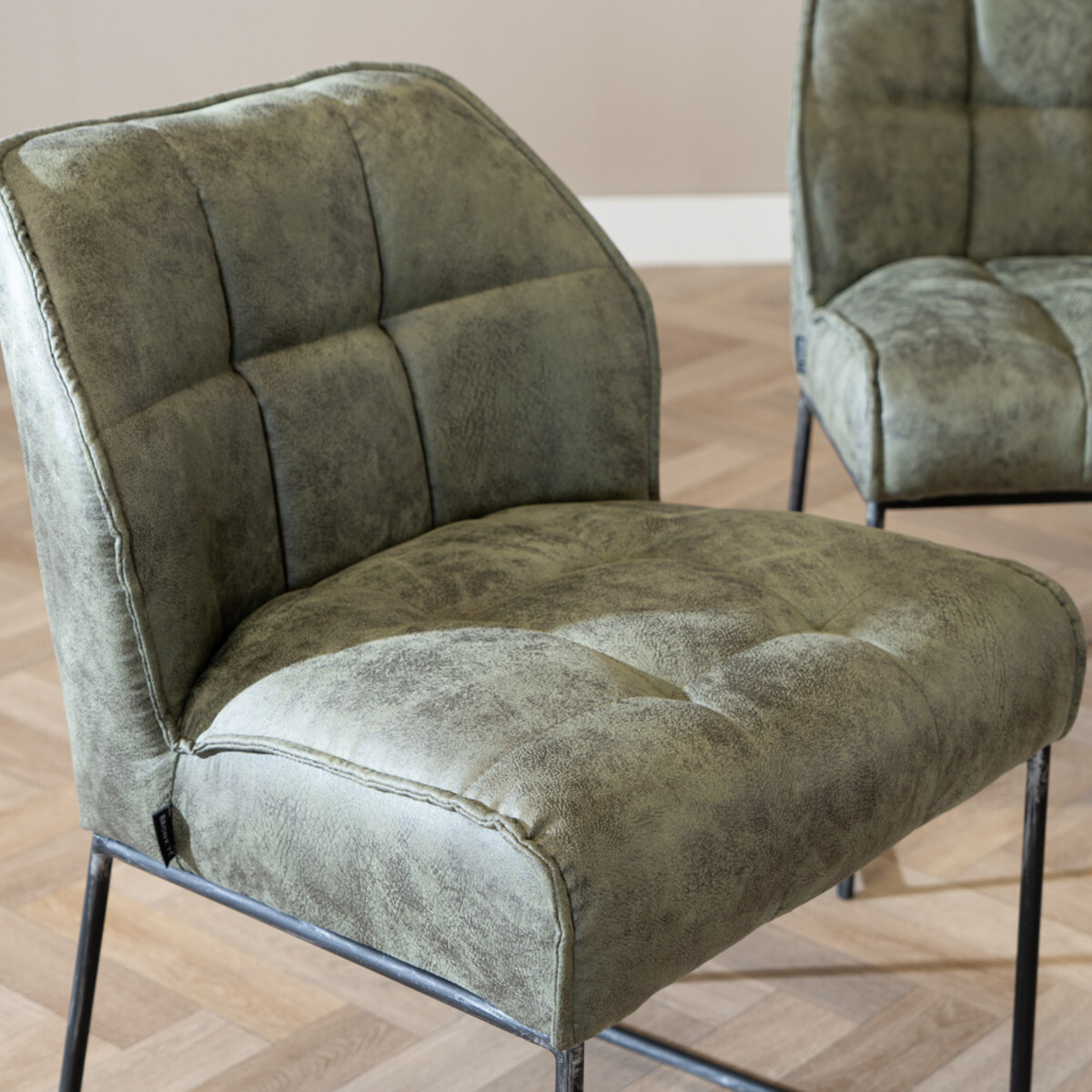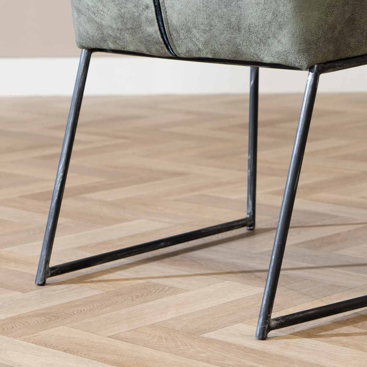 Der Polsterstuhl Abel wurde aus Microfaser gefertigt. Das Material ist nicht ganz eben und hat ein wenig Struktur. Dadurch passt dieser Stuhl in eine Einrichtung im Industrial Design, kann aber auch in einer Landhauseinrichtung oder einer modernen Einrichtung überzeugen. Microfaser ist ein langlebiges Material, welches sich einfach pflegen lässt. In der Regel ist eine Behandlung mit lauwarmen (destilliertem) Wasser ausreichend. Bei etwas hartnäckigeren Flecken empfehlen wir etwas Spülmittel hinzuzugeben. Zudem empfiehlt sich unser Textil-Care-Kit, um den Stoff zu pflegen. So wirst Du jahrelang Freude an diesem Stuhl haben. Dieser gepolsterte Esszimmerstuhl hat ein schwarzes, pulverbeschichtetes Metallgestell mit einem brushed Finish, wodurch es leicht silber schimmert. Dies verleiht ihm einen luxuriösen und dennoch robusten Look. Die markanten Stuhlbeine unterstreichen diesen Look.