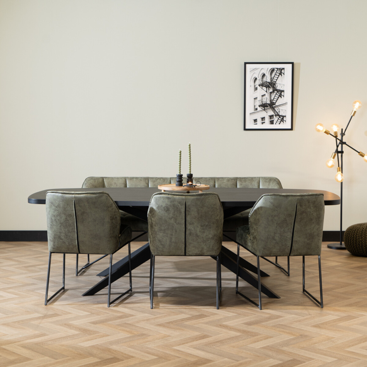 Der Esszimmerstuhl Abel ist ein sehr luxuriöser Stuhl mit einem tollen Sitzkomfort. Der wasserabweisende Polsterstuhl ist gefedert und hat ein weiches Polster, welches den Stuhl einfach unglaublich gemütlich macht. In Kombination mit dem schwarzen Metallgestell im brushed Finish entsteht ein echter Hingucker für dein Esszimmer. Durch den hohen Sitzkomfort kannst Du hierin stundenlang verweilen - Perfekt für ein leckeres Essen mit deinen Freunden!