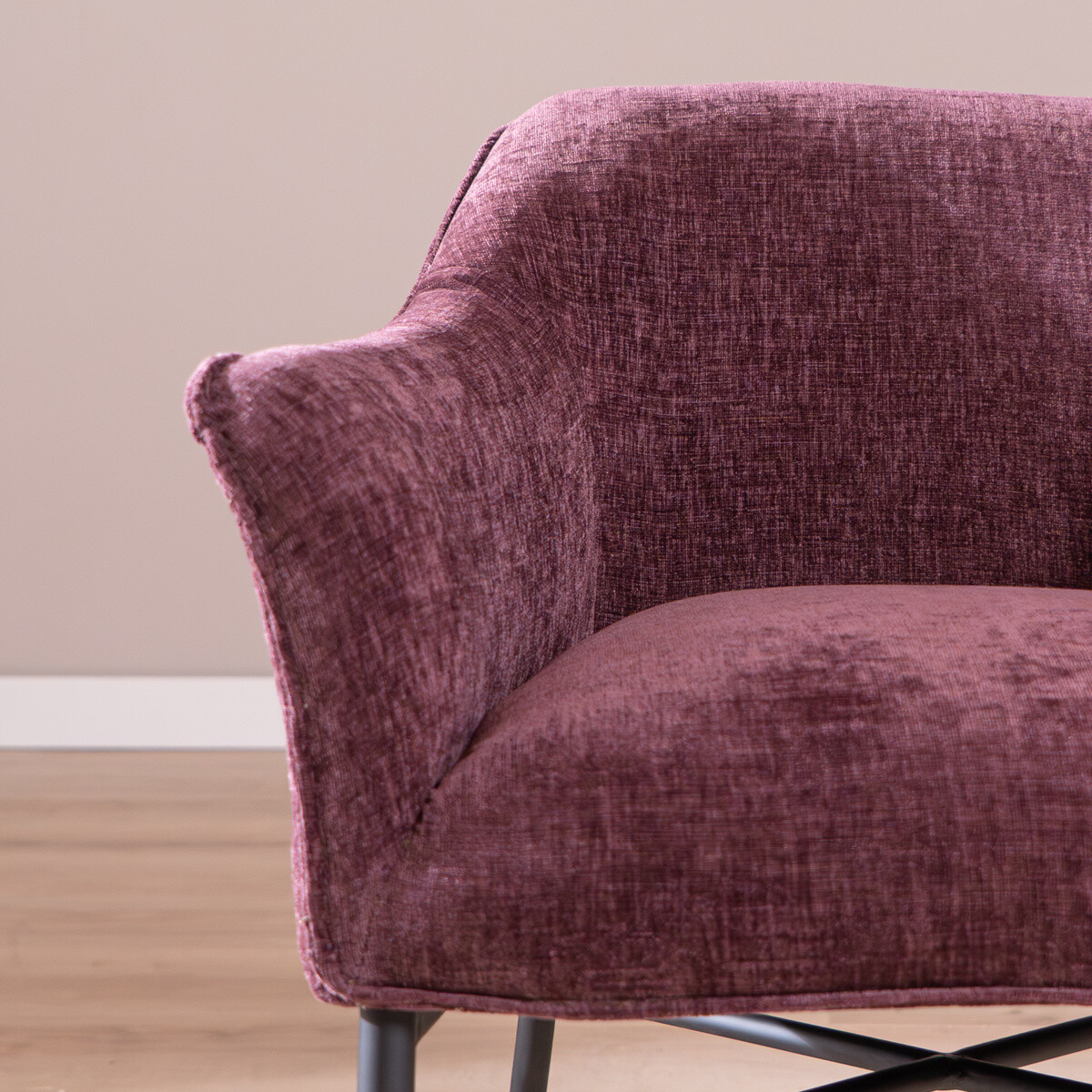 Der Esszimmerstuhl Nubo aus Chenille in Lila hebt den Komfort an deinem Esstisch auf ein neues Niveau. Die Kombination aus stabilem Gestell und weichem Chenille macht diesen Stuhl nicht nur besonders bequem, sondern auch zu einem auffälligen Element in deinem Interieur. Dank des lila Farbtons passt der Stuhl perfekt in ein a touch of color Interieur und verleiht deinem Essbereich eine einzigartige Ausstrahlung.