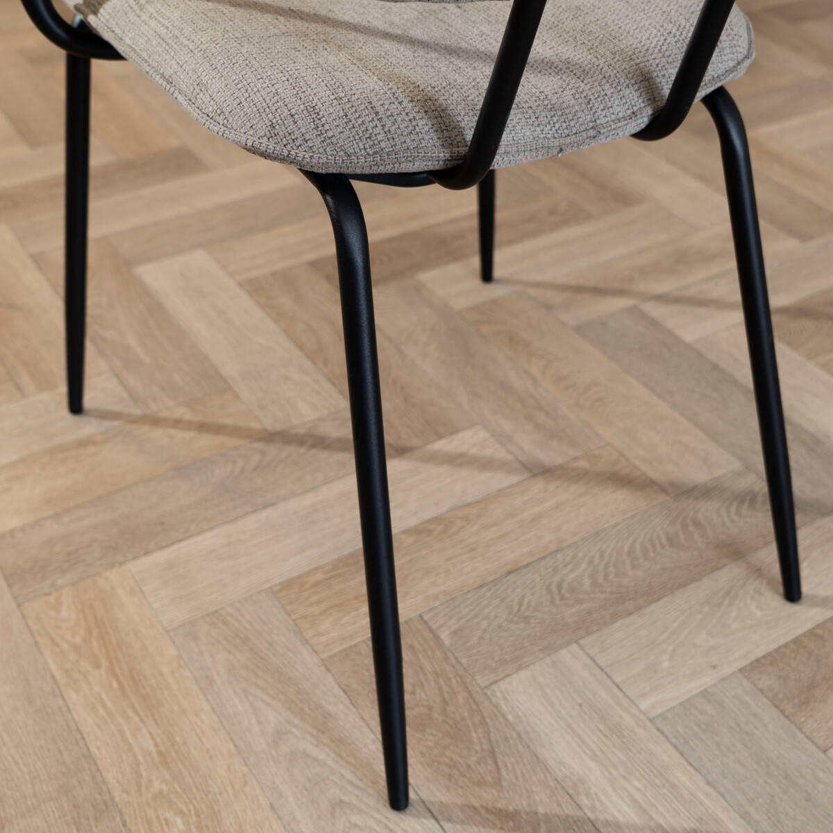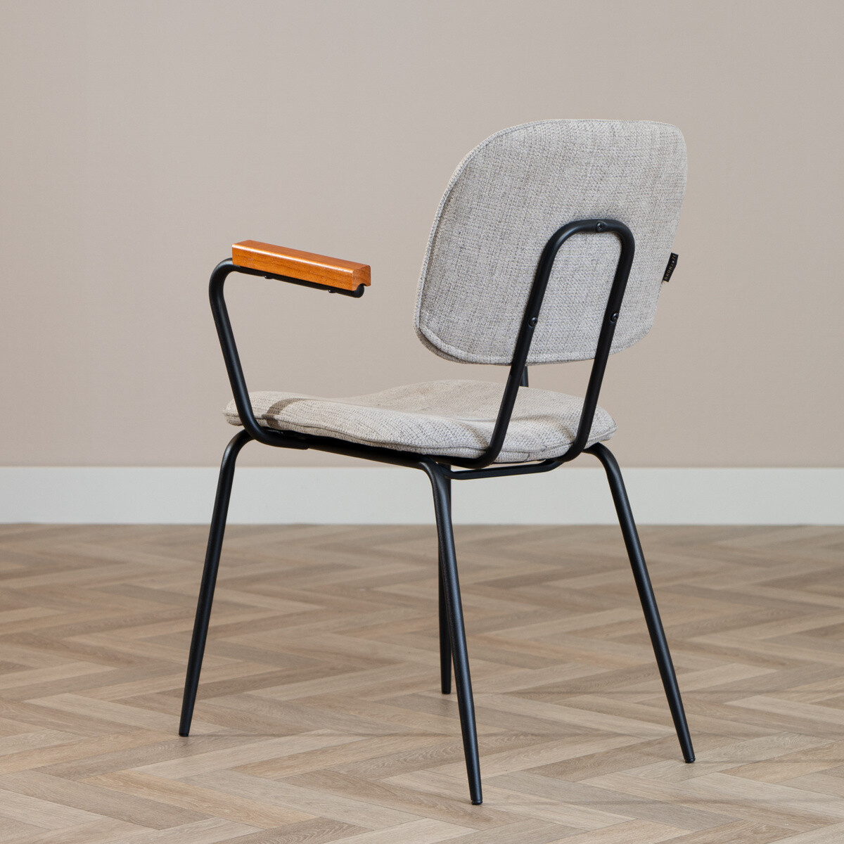 Der Esszimmerstuhl Oskar ist ein zeitloser Stuhl mit integrierten Armlehnen. Der Stuhl im skandinavischen Design ist ein nachhaltiges Modell, gefertigt aus unserem recycelten Stoff Fairmount. Mit diesen Stühlen verleihst du deinem Esszimmer ein hippes Design!