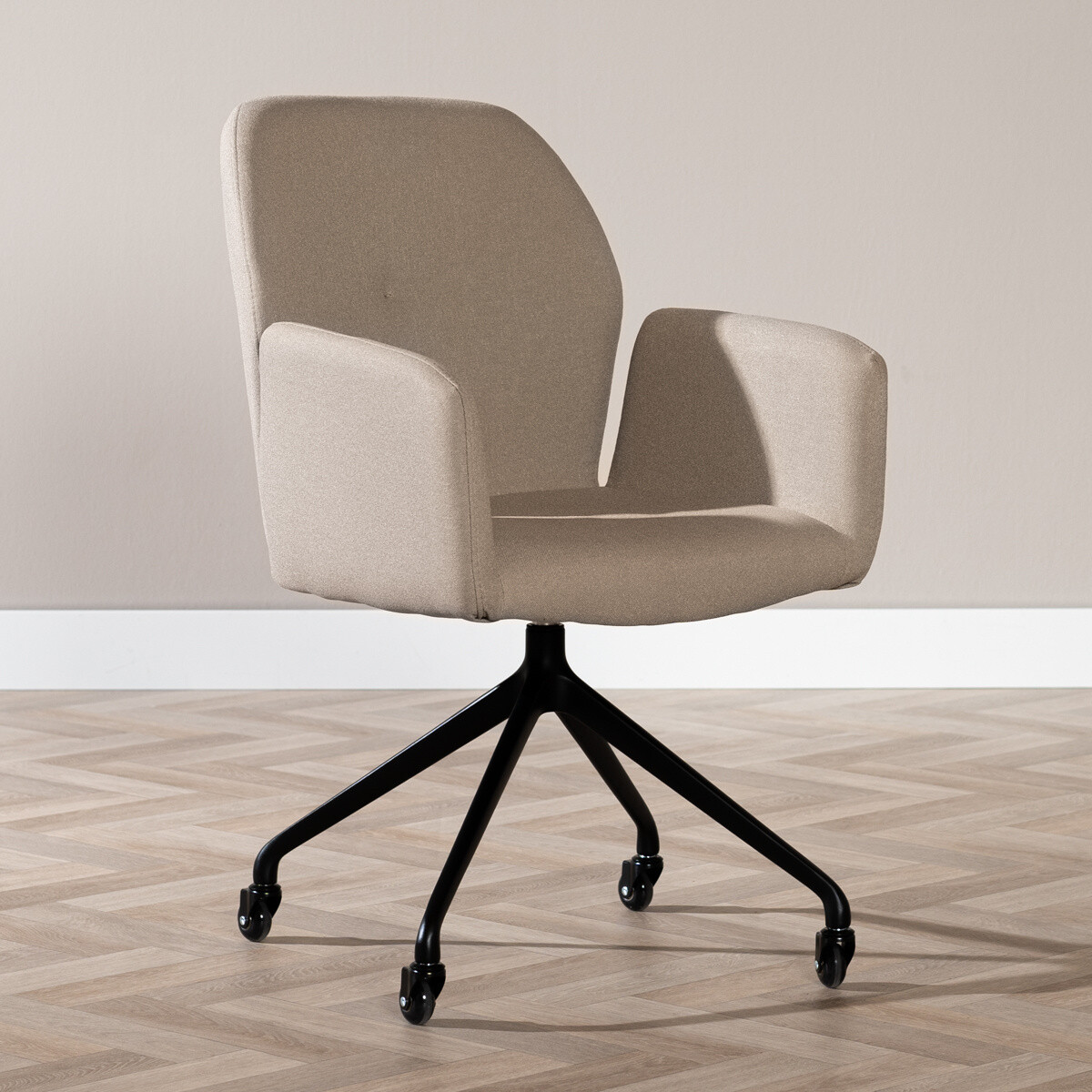 Esszimmerstuhl Runa recycelter Stoff mit Rollen taupe