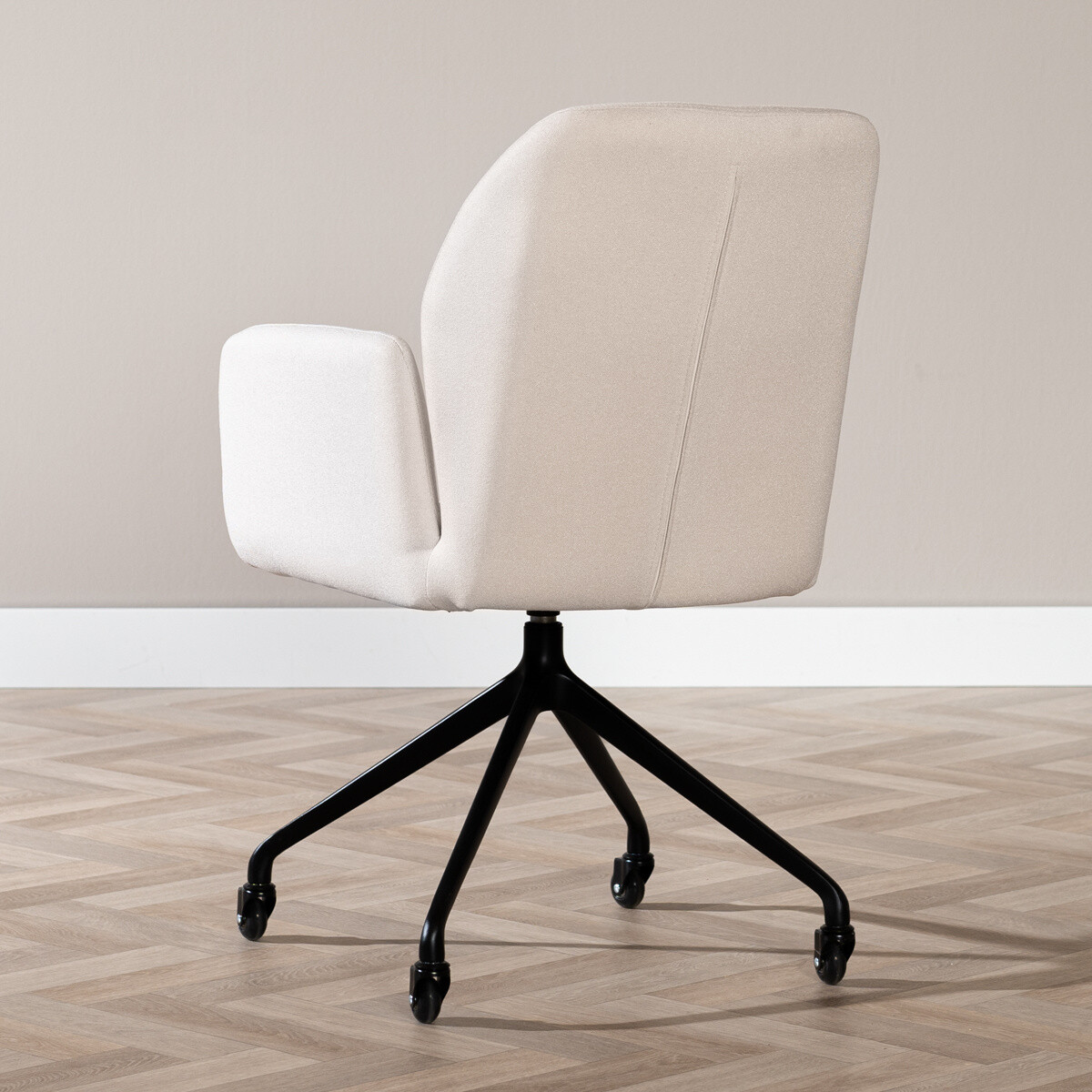 Esszimmerstuhl Runa recycelter Stoff mit Rollen off white
