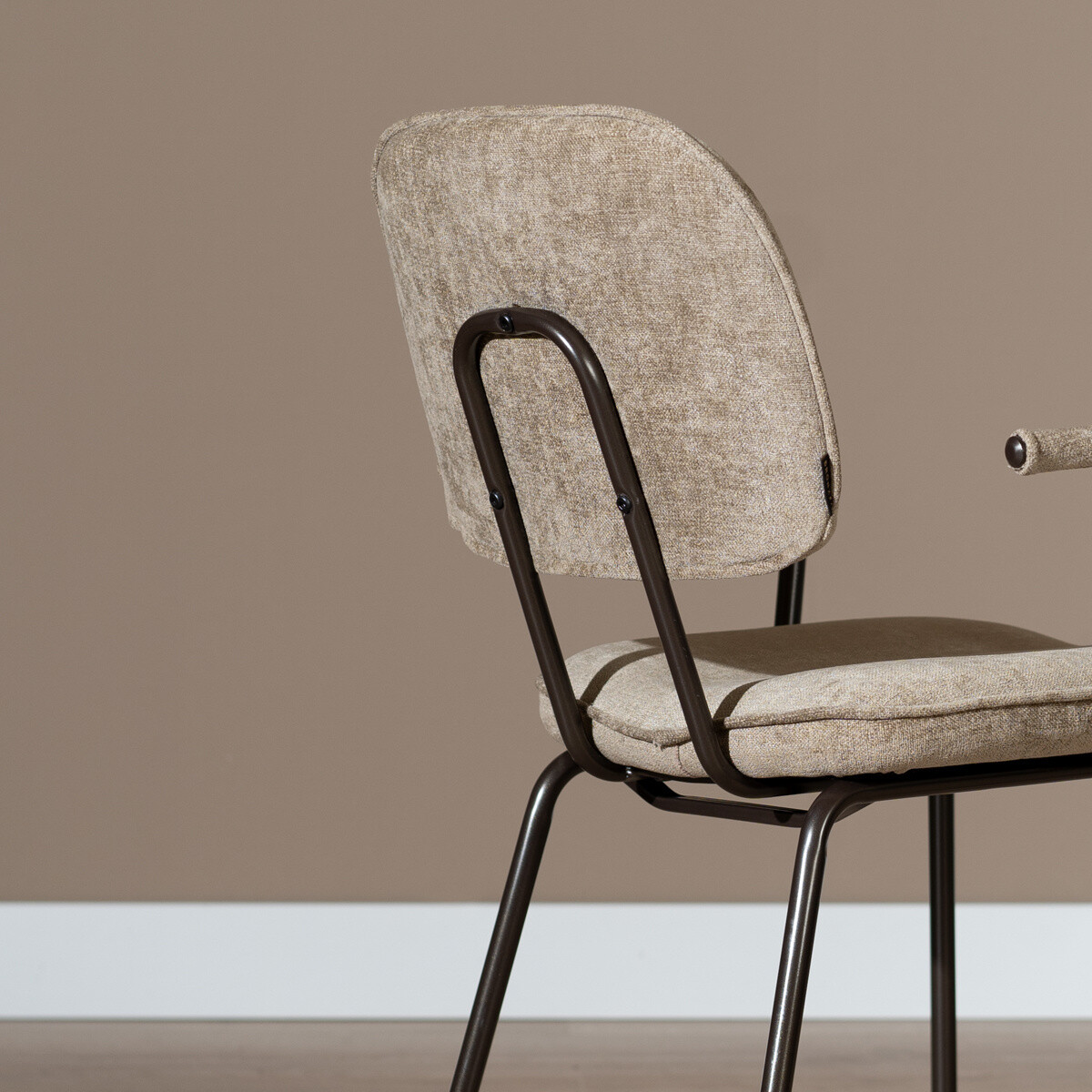 Der Esszimmerstuhl Jethro ist der perfekte Stuhl, wenn du ein minimalistisches Design suchst, aber auch bequem sitzen möchtest. Durch das dunkelbraune Stahlgestell in Kombination mit dem luxuriösen Stoff hat der Stuhl eine exklusive, stilvolle Ausstrahlung, die perfekt zum trendigen Urban-Loft-Stil passt. Der Stuhl hat einen industriellen Charakter, aber die Kombination aus dem weichen Stoff mit dezentem Glanz und dem dunkelbraunen Gestell macht ihn zu einem echten Hingucker am Esstisch.