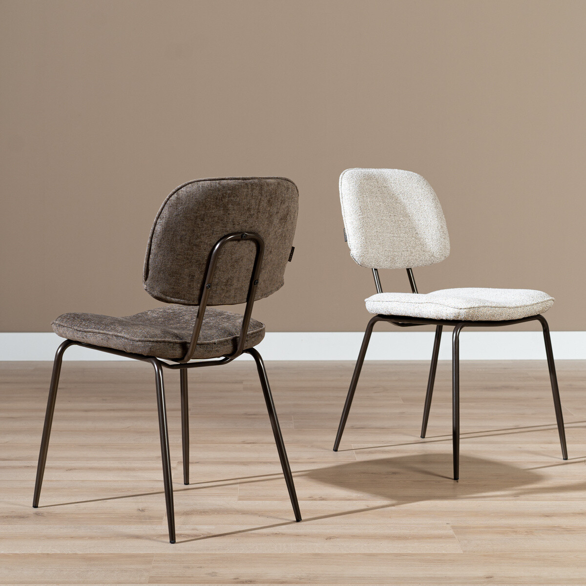 Der Esszimmerstuhl Javi ist der perfekte Stuhl, wenn du ein minimalistisches Design suchst, aber auch bequem sitzen möchtest. Durch das dunkelbraune Stahlgestell in Kombination mit dem luxuriösen Stoff hat der Stuhl eine exklusive, stilvolle Ausstrahlung, die perfekt zum trendigen Urban-Loft-Stil passt. Der Stuhl hat einen industriellen Charakter, aber die Kombination aus dem weichen Stoff mit dezentem Glanz und dem dunkelbraunen Gestell macht den Stuhl zu einem echten Hingucker am Esstisch.