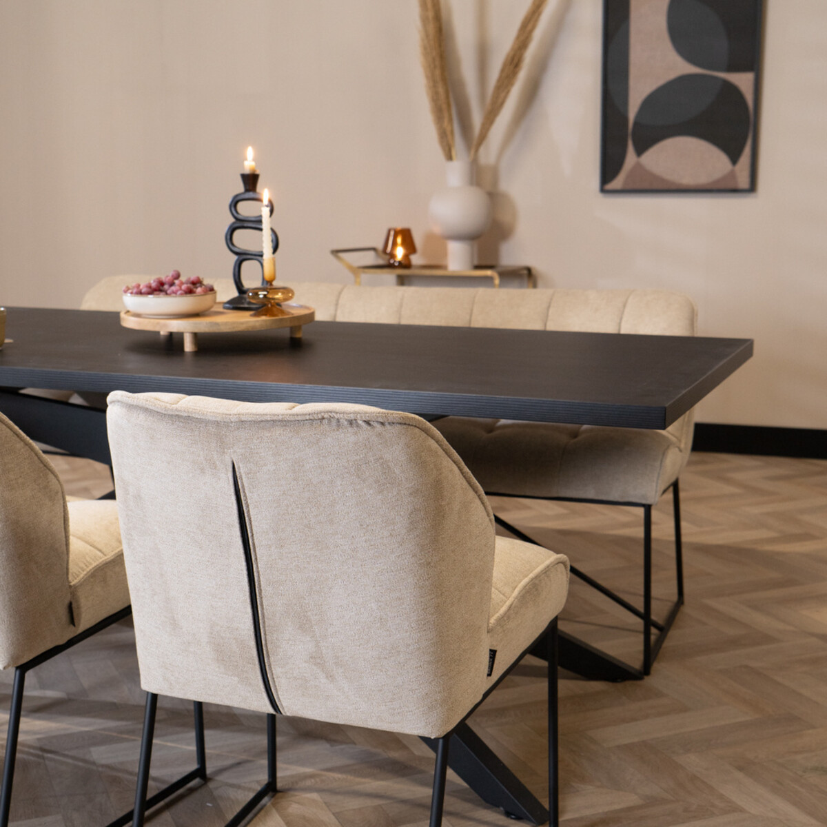 Tipp! Kombiniere den Polsterstuhl mit dem passenden Barhocker und der Sitzbank Jelle, um deinen Essbereich abzurunden.