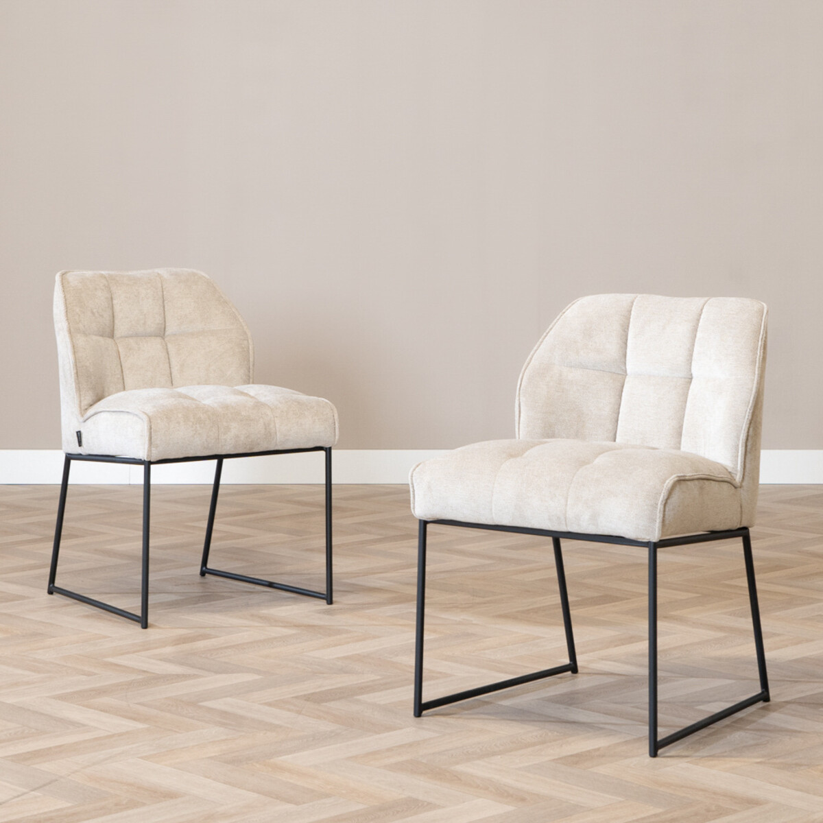 Der Esszimmerstuhl Jelle ist ein sehr luxuriöser Stuhl mit einem tollen Sitzkomfort. Der wasserabweisende Polsterstuhl ist gefedert und hat ein weiches Polster, welches den Stuhl einfach unglaublich gemütlich macht. In Kombination mit dem schwarzen Metallgestell entsteht ein echter Hingucker für dein Esszimmer. Durch den hohen Sitzkomfort kannst Du hierin stundenlang verweilen - Der perfekte Stuhl für Esstische für ein leckeres Essen mit deinen Freunden!