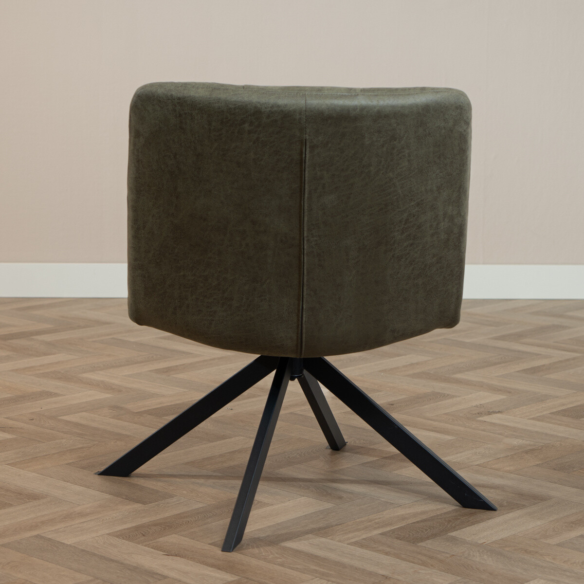 Der Sessel Eevi hat eine bequeme Sitzfläche, die vollständig mit Eco-Leder überzogen wurde. Der Stoff ist wasserabweisend, somit sehr pflegeleicht. Außerdem ist der Loungesessel mit einem schwarzen, drehbaren Metallgestell versehen, das für ausreichend Stabilität sorgt und zusammen mit dem Eco-Leder für ein rustikales Aussehen kreiert. Der Sessel ist in jedem Raum flexibel einsetzbar. Du kannst ihn beispielsweise als Lesesessel im Schlafzimmer oder als Fernsehsessel im Wohnzimmer verwenden. Egal wie du dich entscheidest, der Ledersessel Eevi verleiht deiner Einrichtung das gewisse Etwas.
