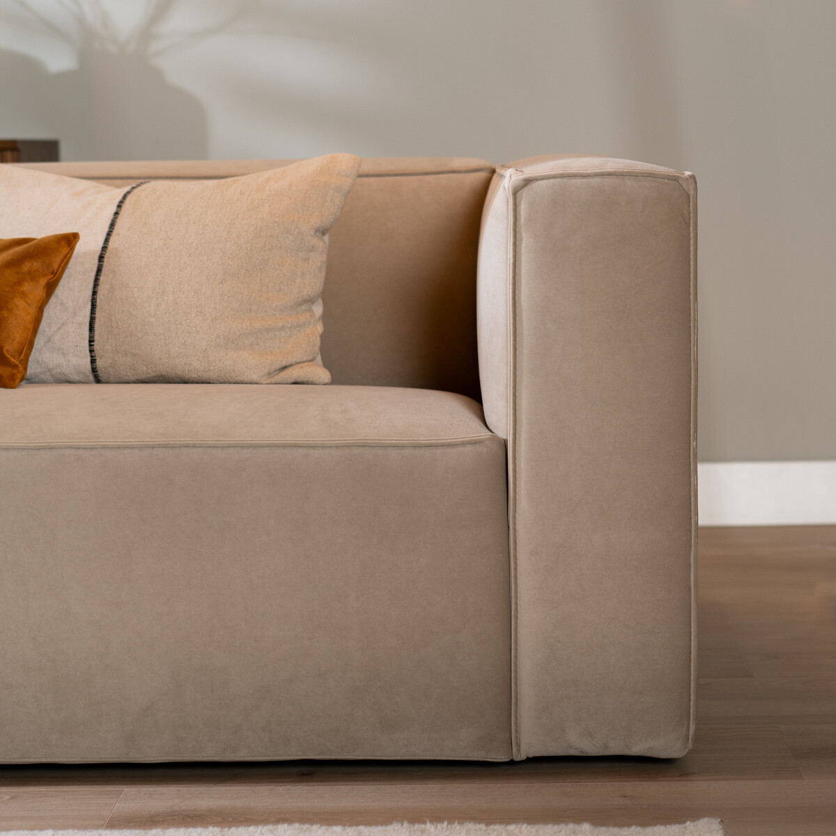 Das Samt-Sofa Memphis hat ein elegantes Design mit luxuriöser Ausstrahlung dank seiner weichen Samtpolsterung. Für zusätzliche Atmosphäre kannst du schöne Zierkissen hinzufügen. Das Sofa hat eine etwas festere Sitzfläche und eine niedrigere Rückenlehne, so dass es weniger geeignet ist, wenn du ein weiches Sofa suchst, auf dem du dich beim Fernsehen ganz hinlegen kannst. Dank seines schlichten Aussehens passt das Ecksofa in verschiedene Einrichtungsstile. Das Memphis-Sofa ist in verschiedenen Farben, Größen und Materialien erhältlich.