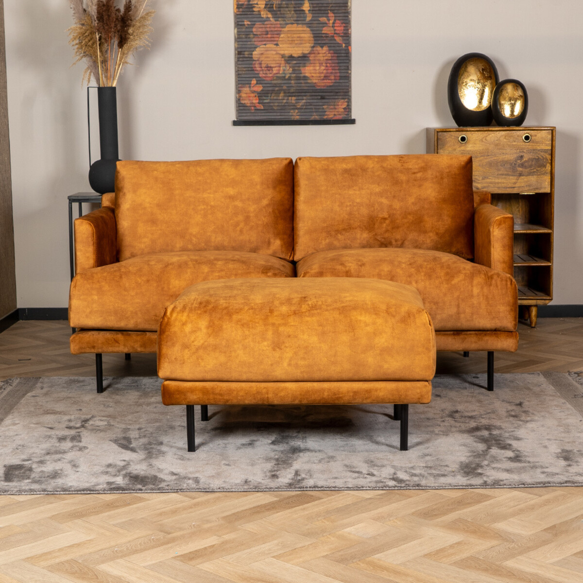 Du kannst den Ottoman als zusätzliches Element zu einem Sofa hinzufügen. Auf diese Weise kannst du ihn als Fußbank verwenden. Wenn du den Velourshocker etwas vom Sofa wegschiebst, schaffst du einen separaten zusätzlichen Sitzplatz. Ideal für Besucher. Wenn du ein Tablett darauf stellst, wird er zu einem perfekten Ersatz für einen Couchtisch oder Beistelltisch. Ein Hocker ist also ein wirklich multifunktionales Möbelstück!