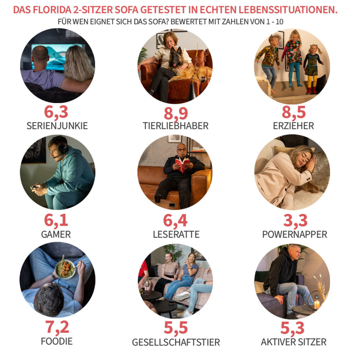 Das 2-Sitzer Sofa Florida wurde mit einem wasserbeständigen Stoff aus Samt bezogen und bietet durch die ausreichende Polsterung hohen Komfort. Der Zweisitzer kann in jedem Raum perfekt integriert werden. Erweitere einfach dein Wohnzimmer oder Schlafzimmer mit dieser Couch als gemütliches It-Piece im modernen Samt Look!