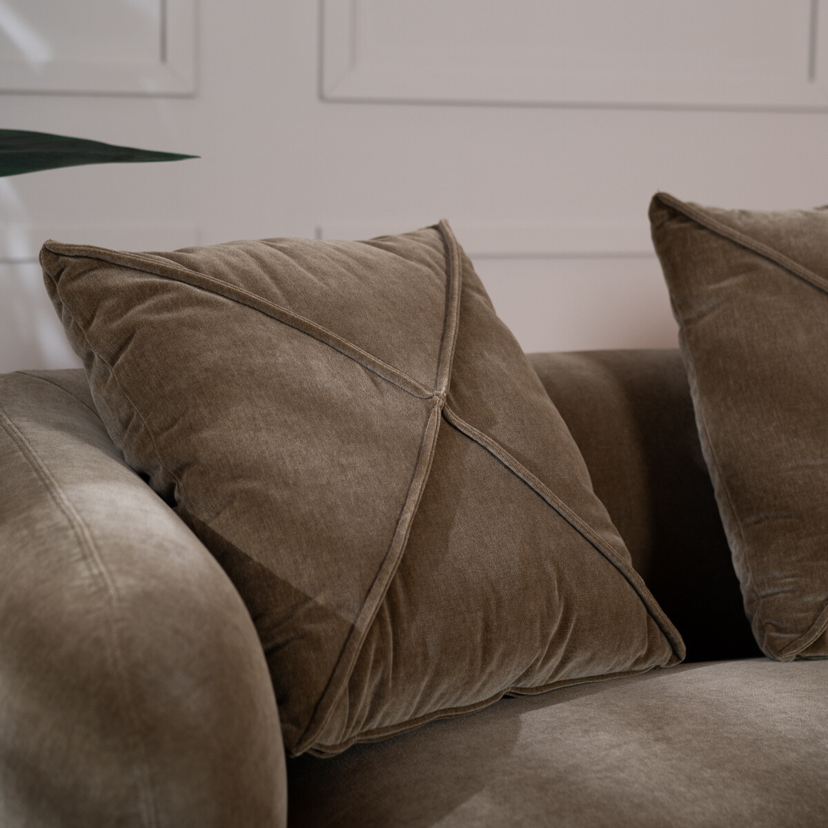 Der 3 Sitzer Palermo ist ein sehr komfortables Samtsofa, welches mit drei Kissen geliefert wird. Das wasserabweisende Sofa überzeugt mit einer unglaublich gemütlichen Polsterung. Das Samtsofa ist dank der gepolsterten Armlehnen und den zwei mitgelieferten Kissen im gleichen Stoff sehr komfortabel.