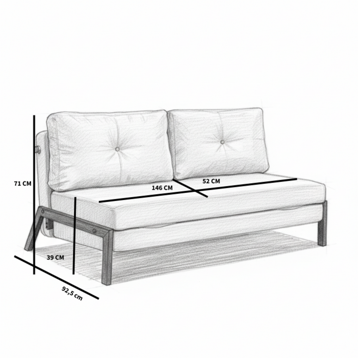 Mit dem Bettsofa brauchst du keine zusätzliche Matratze. Du kannst einfach ein Spannbettlaken und ein Kissen auf das Sofa legen, um es als Bett zu nutzen. Das Schlafsofa ist für zwei Personen geeignet.