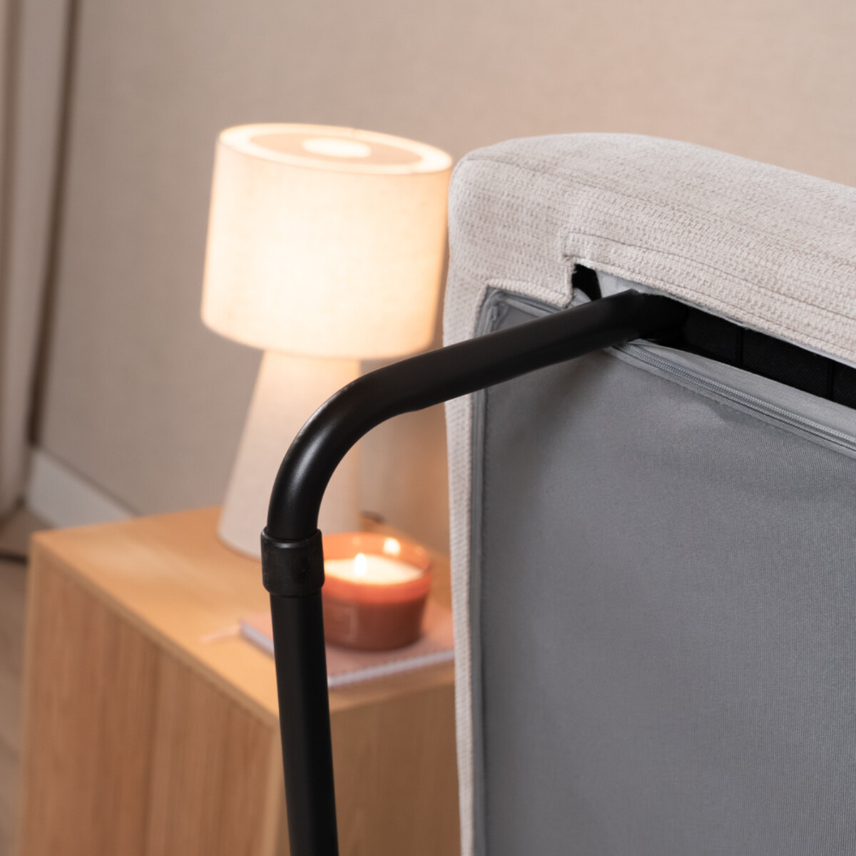 Die Schlafcouch wurde aus 100% recyceltem Stoff gefertigt. Der Fairmount-Stoff ist ein Polyestergewebe, welches aus Plastikflaschen besteht und damit sehr nachhaltig ist. Der Stoff ist genauso robust, widerstandsfähig und langlebig wie normales Polyester. Darüber hinaus ist der Stoff wasserabweisend, was in einem Haushalt mit Kindern ideal ist. Der Stoff des skandinavischen Schlafsofas mit Lehne lässt sich leicht mit einem leicht feuchtem Tuch abwischen. Wir empfehlen, die Couch mit unserem Textil-Pflege Kit zu behandeln, das die Schlafcouch noch besser vor Flecken schützt. Die Beine der Schlafcouch bestehen aus pulverbeschichtetem Metall und verleihen dem Raum eine Leichtigkeit.