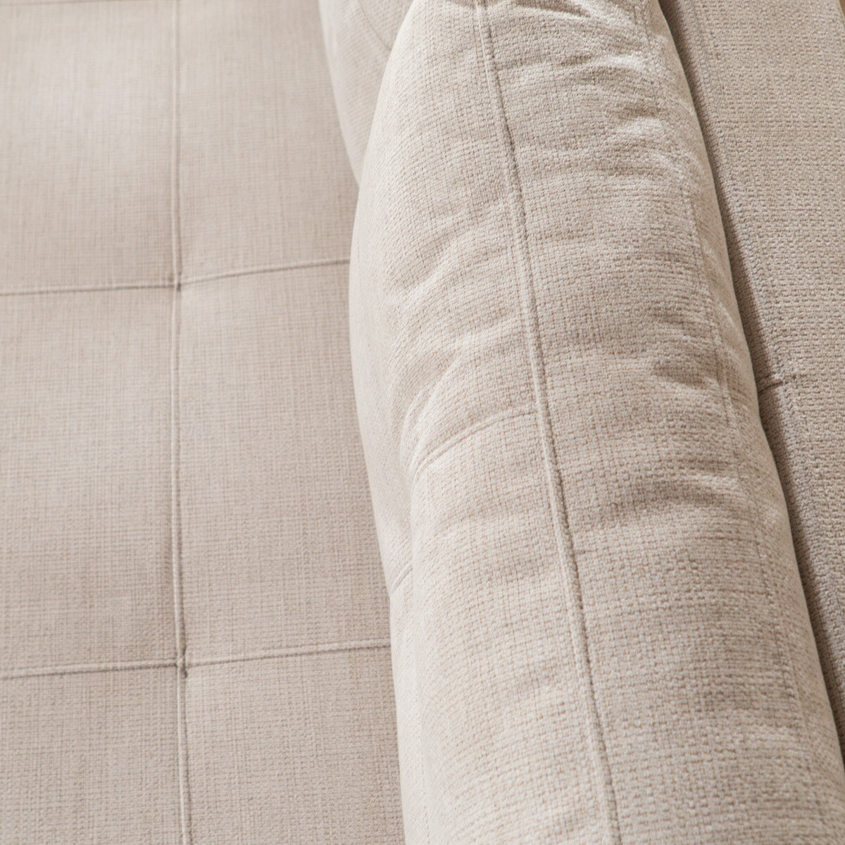 Dieses Schlafsofa wurde sorgfältig für optimalen Komfort und Langlebigkeit konzipiert. Die Sitz- und Liegefläche besteht aus einem 2 cm dicken Schaumkern mit einer Dichte von 25 kg/m³, ergänzt durch eine 7 cm dicke Schicht Polyfiber. Diese Polyfiber wurde von Hand in kleine Taschen eingearbeitet, um eine gleichmäßige Verteilung und zusätzliche Weichheit zu gewährleisten. Darüber hinaus ist das Schlafsofa mit Nosag-Federn ausgestattet, die für eine stabile Unterstützung und eine lange Lebensdauer sorgen.