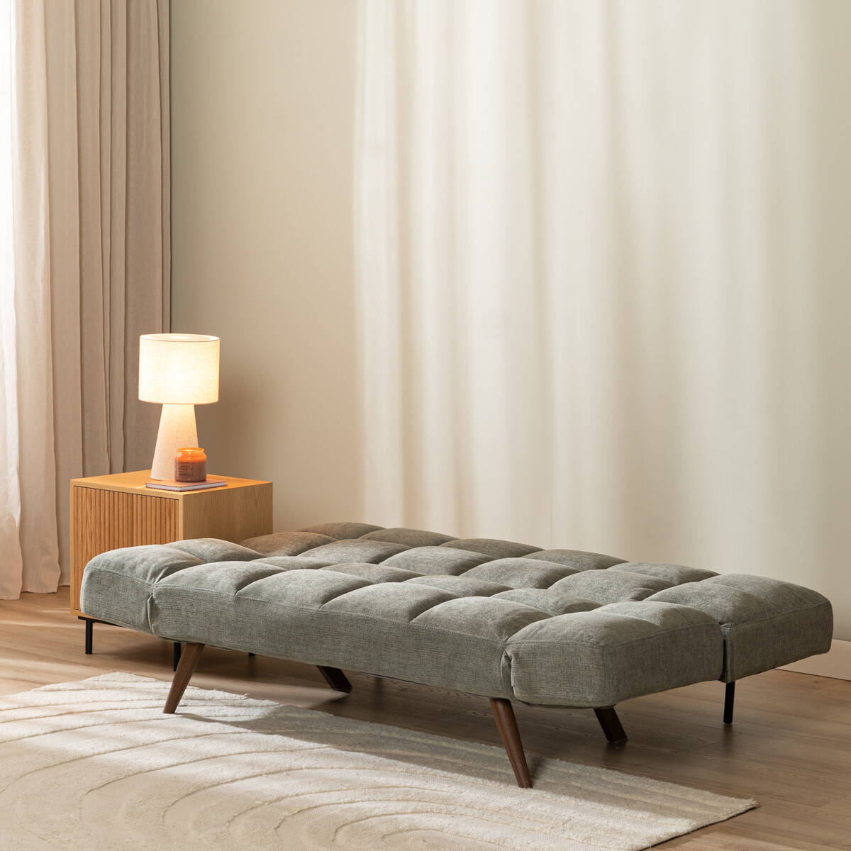Mit dem Bettsofa brauchst du keine zusätzliche Matratze. Du kannst einfach ein Spannbettlaken und ein Kissen auf das Sofa legen, um es als Bett zu nutzen. Das Schlafsofa ist für zwei Personen geeignet.