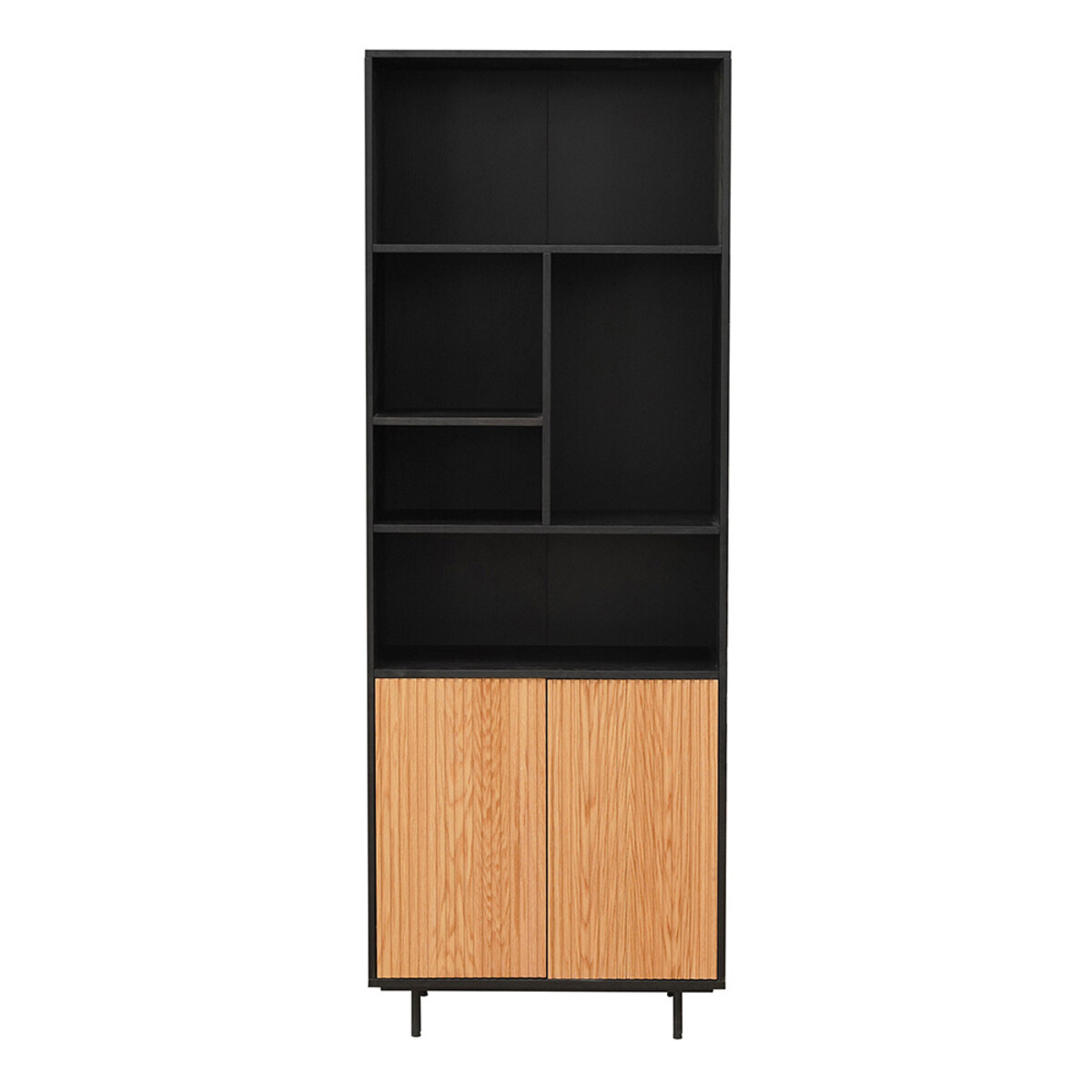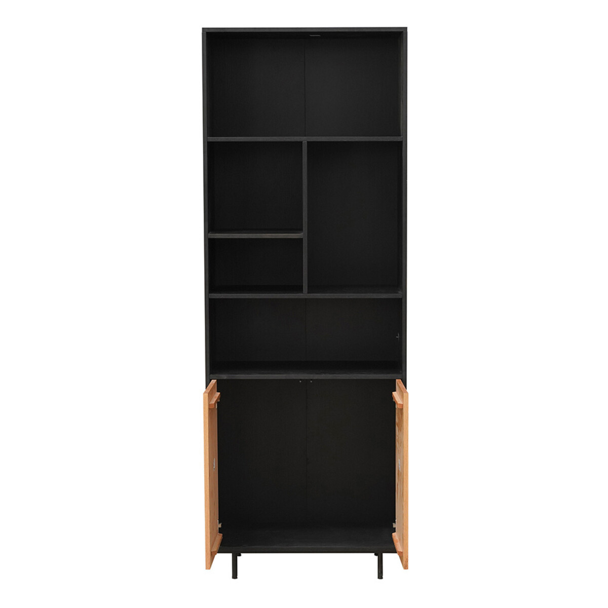 Der offene Schrank Bradley is aus Rubberwood mit einer Schicht Eichenholz gefertigt, was dem Möbelstück ein rustikales Aussehen verleiht. Der Schrank ist 220 cm hoch und hat zwei Schranktüren. Dadurch wird der Raum optimal genutzt, ohne dass der offene Schrank viel Platz im Raum einnimmt. Hinter den beiden Schranktüren gibt es ausreichend Stauraum für Bücher, Dokumente oder andere Gegenstände, die nicht direkt sichtbar sein sollen. Die Regalböden im Schrank können auf die gewünschte Höhe eingestellt werden, um die richtigen Dinge zu verstauen.
